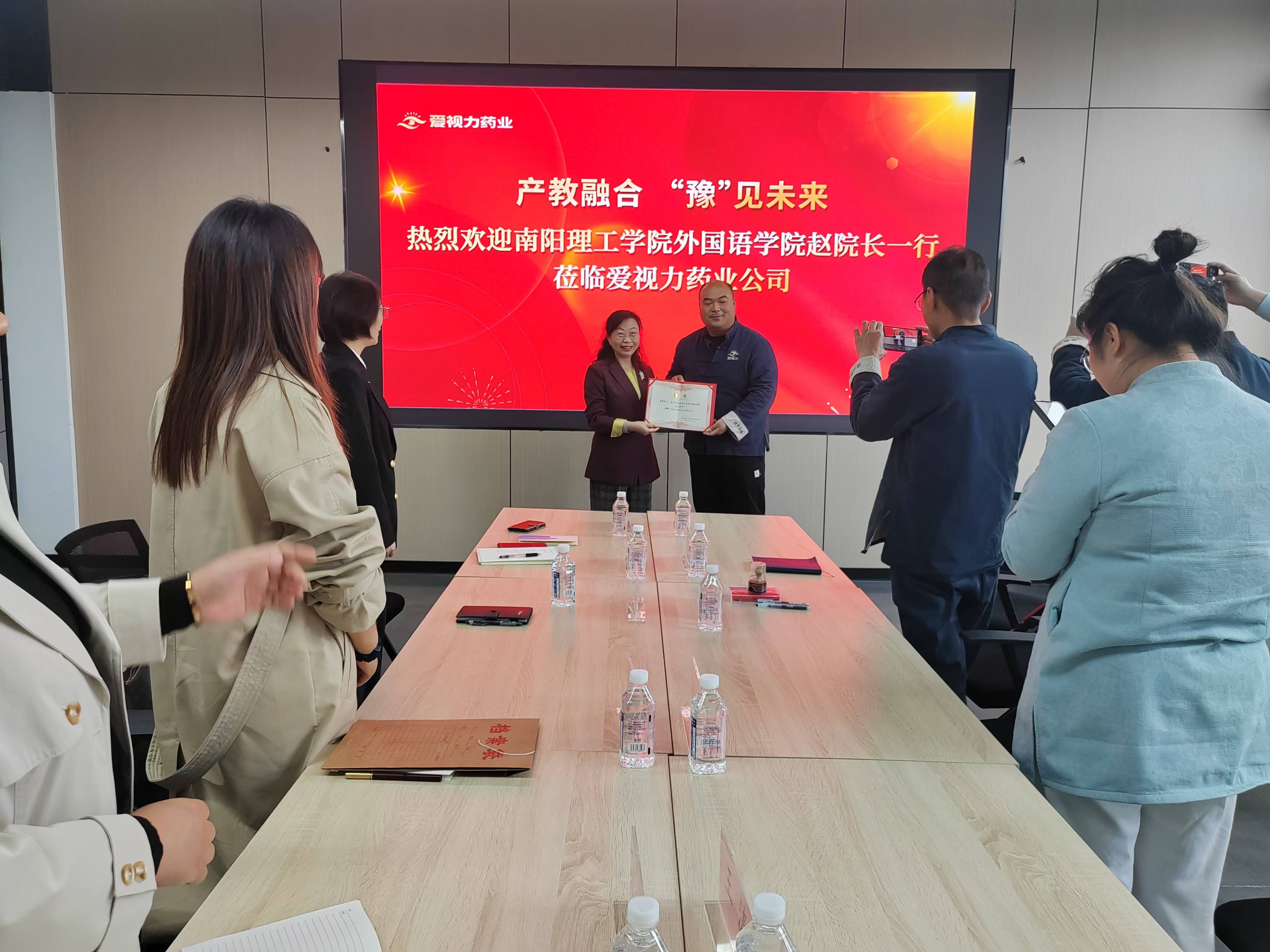 本网讯(通讯员/徐萍)10月24日,外国语学院响应国家关于加强高校与企业合作、推动产学研融合的号召,积极拓展校外实习实践平台。在学院领导的带领下,外国语学院与河南省爱视力药业有限公司成功签约校外实习实训基地,并正式聘请该企业资深专家作为学院的企业导师,为学子们提供宝贵的实践机会和职业指导。