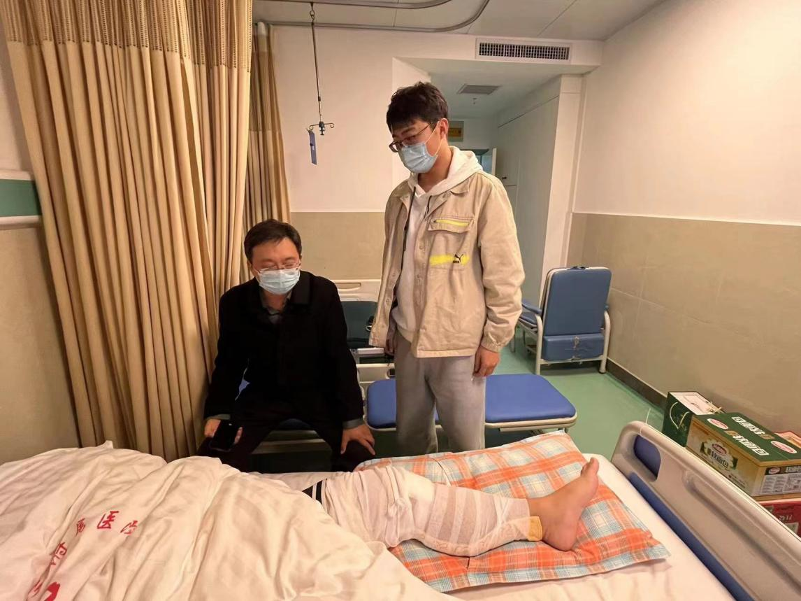 据悉,11月2日晚,该生在打篮球过程中意外受伤,辅导员第一时间汇报上级并陪同前往医院,协助检查、办理住院手续。次日,学院相关负责人及时前往医院看望该生,在详细询问主治医生关于学生的受伤情况、治疗方案及后期恢复等事项后,学院相关负责人鼓励该生保持积极乐观心态,安心配合治疗,争取早日康复。该生对学院的关怀深表感谢,表示会好好养病,早日恢复健康,以优异的成绩回报学院的关心、老师的培育和同学的帮助。