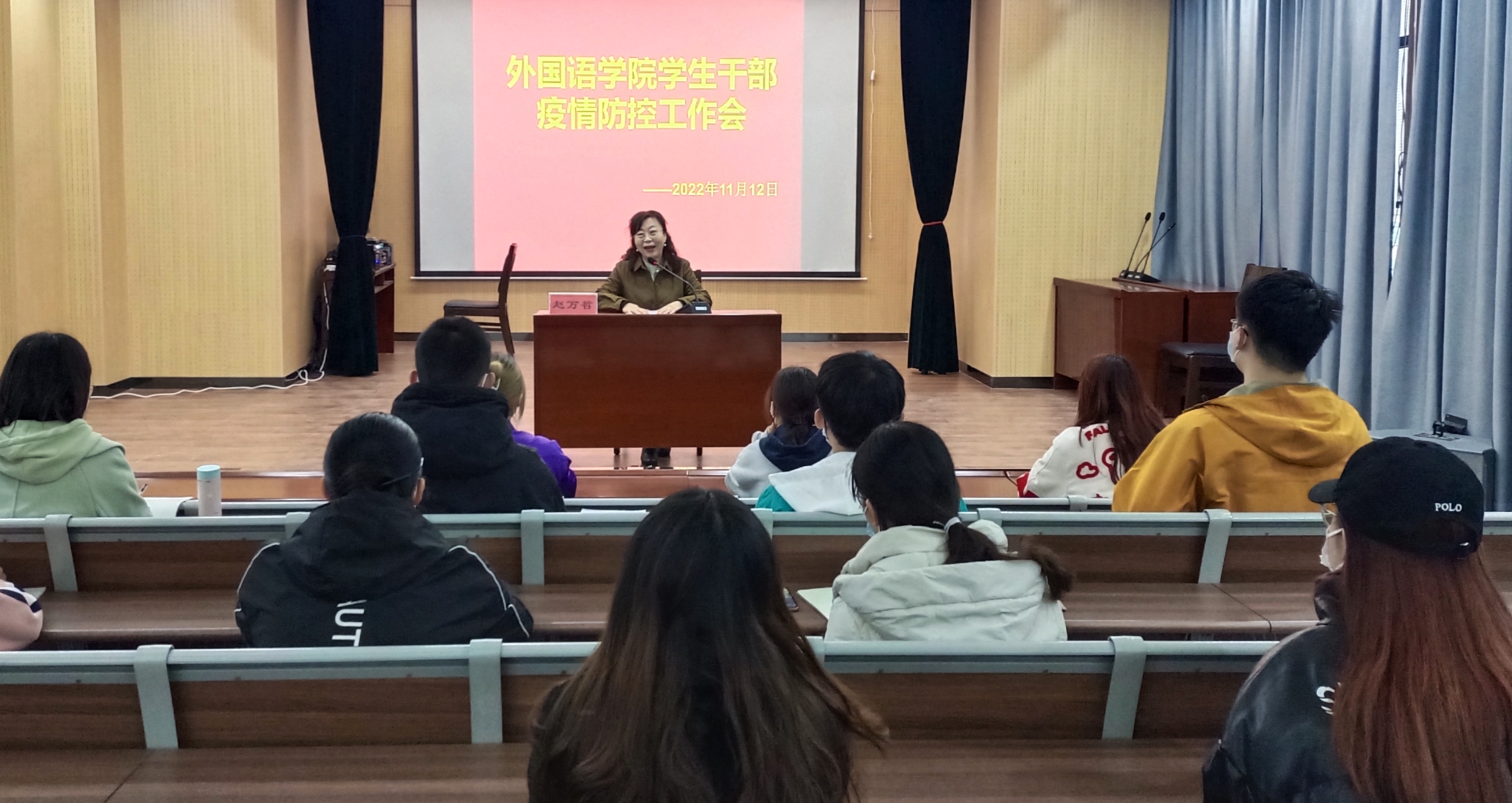 本网讯(通讯员/肖炎)11月12日上午,外国语学院于19号教学楼105室召开学生干部疫情防控工作会。本次会议由外国语学院党委书记赵万哲主持,外国语学院主要学生干部参加。