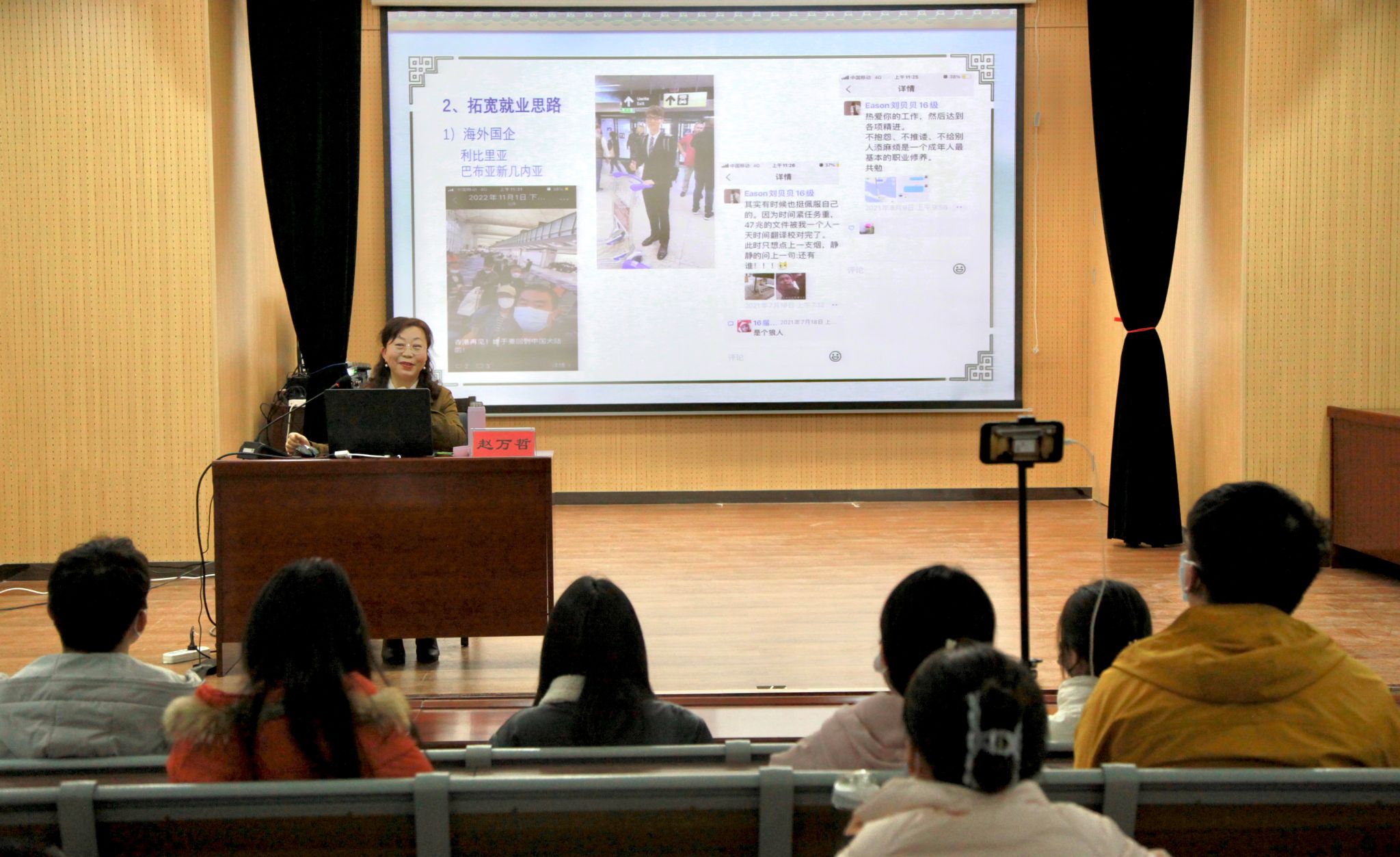 讲座采取线上线下联动方式开展,共设一个主会场,三个分会场。讲座伊始,赵万哲为毕业生深刻分析了当前的就业形势,提出新就业理念和就业新形态;随后,赵万哲从品德修行、实践能力、责任担当等方面给毕业生提出建议;紧接着,赵万哲结合指导往届毕业生的丰富经验,提出实现高质量就业要善于抓住机会,了解国家政策,并就如何拓宽就业思路提出指导性意见;最后,赵万哲勉励全体学生,作为新时代青年,要牢记“三个务必”,谱写绚丽的人生华章。