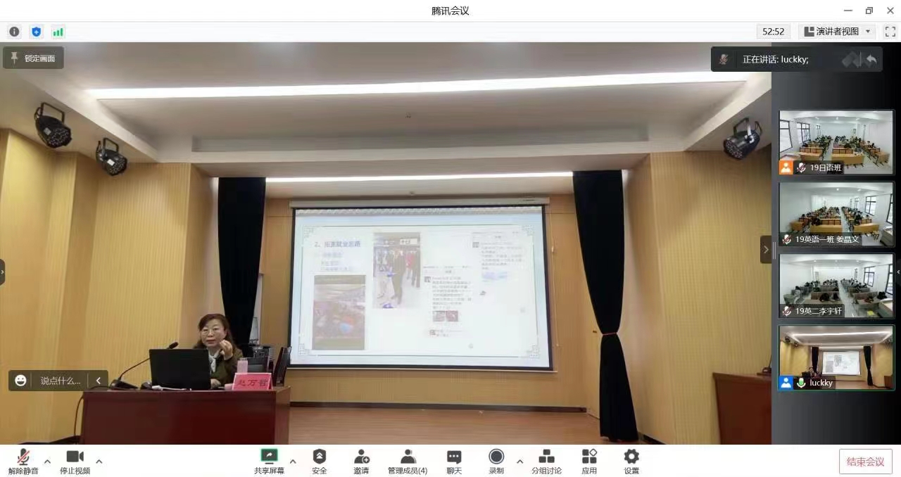 本网讯(通讯员/亓晓璇)为进一步增强毕业生就业竞争力,助力毕业生高质量就业,11月13日,外国语学院举办“提高职业素养,增强就业竞争能力”主题讲座,讲座由外国语学院党委书记赵万哲主讲,辅导员李鹏飞主持,19级全体学生参加。