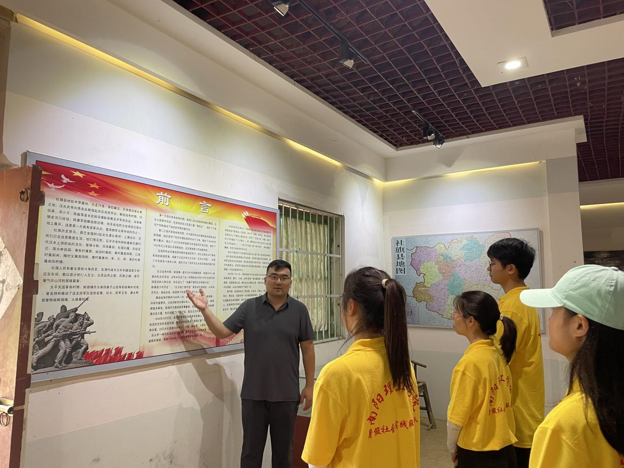 活动第一站,志愿服务队来到南阳市爱国主义教育示范基地社旗彰新寨纪念馆进行参观学习,五个展览厅通过图文、绘画等形式展示了刘伯承、邓小平等老一辈无产阶级革命家领导中原野战军英勇作战的光辉历史。服务队队员们深刻体会到今天的幸福生活是革命前辈抛头颅洒热血换来的,我们应当努力学习,为实现中华民族伟大复兴贡献力量。