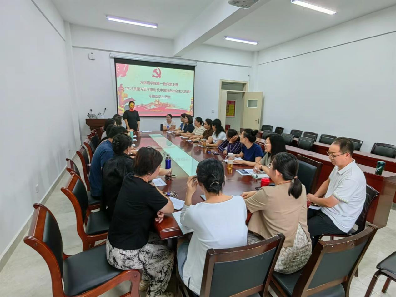 本网讯(通讯员/任彦松)9月12日下午,外国语学院第一教师党支部在学院19201会议室召开“学习贯彻习近平新时代中国特色社会主义思想”专题组织生活会。党委书记赵万哲、副书记李爽正以普通党员身份参加,会议由支部书记孙莉主持。