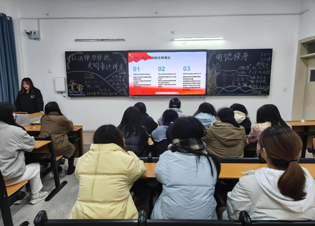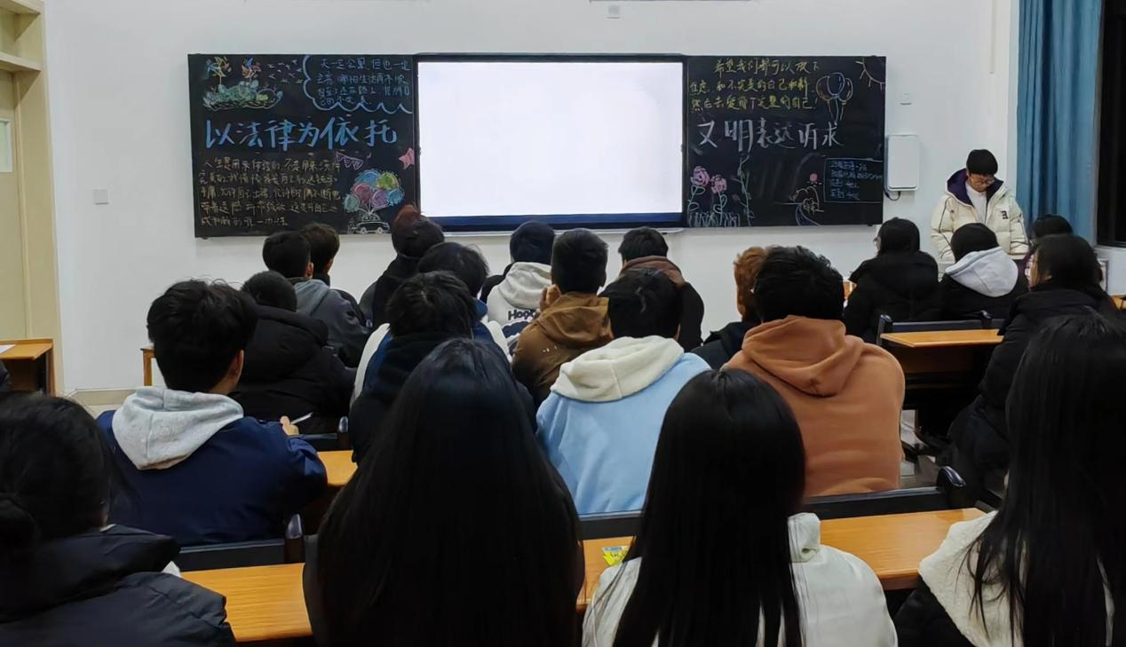 本网讯(通讯员/尚静怡)随着法治社会的建设和大学生维权意识的觉醒,如何文明有效表达自己的合理诉求成为同学们共同探讨的话题。为推动同学们合理运用网络,依法捍卫自身权益,11月26日,外国语学院于19号教学楼开展“以法律为依托,文明表达诉求”主题班会,23级全体同学积极参加。