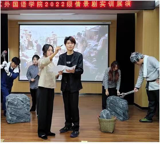 整场演出精彩纷呈,高潮迭起,欢乐中夹杂着感动,真切体会到家乡的发展来自一个个平凡小人物无私的付出与坚守。英语情景剧展演是英语专业的一门专业必修实践课,由学生自编、自导、自演。课程通过“以演促学”的教学模式,以“讲好中国故事”为导向,把课程内容与学生社会实践结合起来,推动社会大课堂和校内课堂有机结合。这不仅有利于培养学生的英语综合应用能力和创新实践能力,而且有利于传播中国独具特、充满智慧的地域文化,讲好中国故事。(摄影/朱士甜 校对/王玥晴 审核/李秋芳 责编/李康)