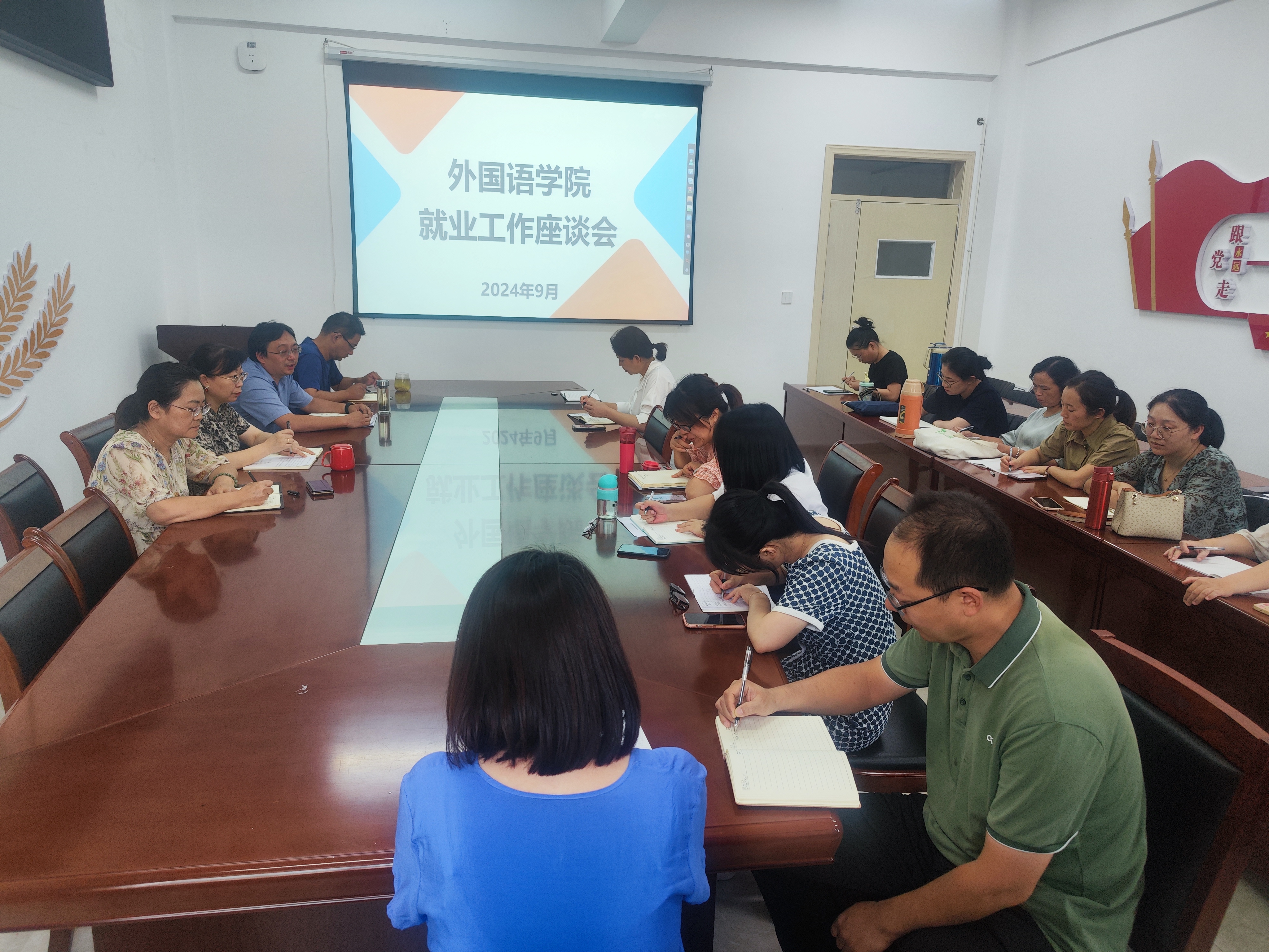 本网讯(通讯员/陶明越)为进一步做好就业工作,2024年9月4日,外国语学院召开就业工作座谈会。外国语学院领导班子、专业负责人、24、25届学业导师、就业专干、毕业班辅导员参与本次会议,会议由党委副书记李爽正主持。