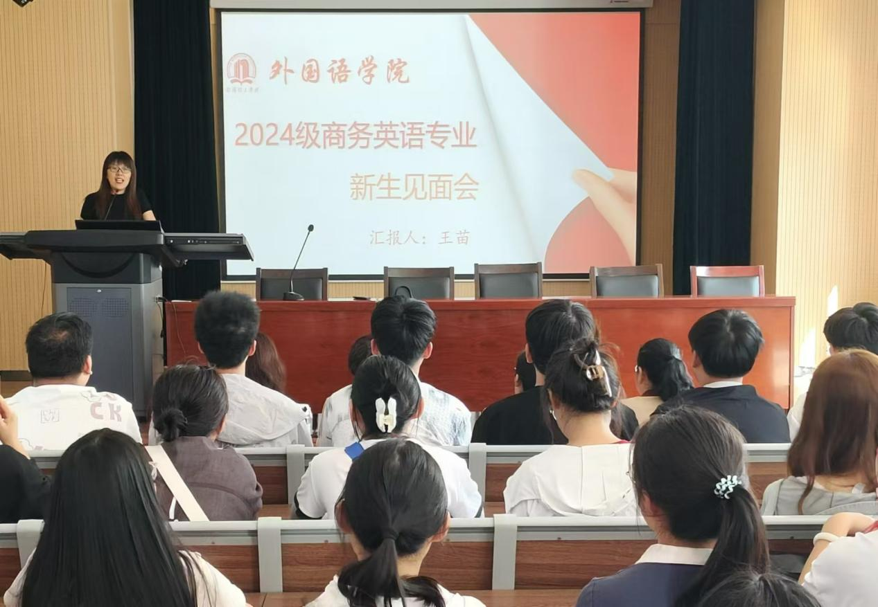 本网讯(通讯员/韩琳娜)为了进一步帮助新生们了解专业定位,明确奋斗方向,更好地向未来发展。9月10日,外国语学院于19号教学楼105开展商务英语新生见面会,此次活动由商务英语老师王苗主讲,24级商务英语全体新生参加。