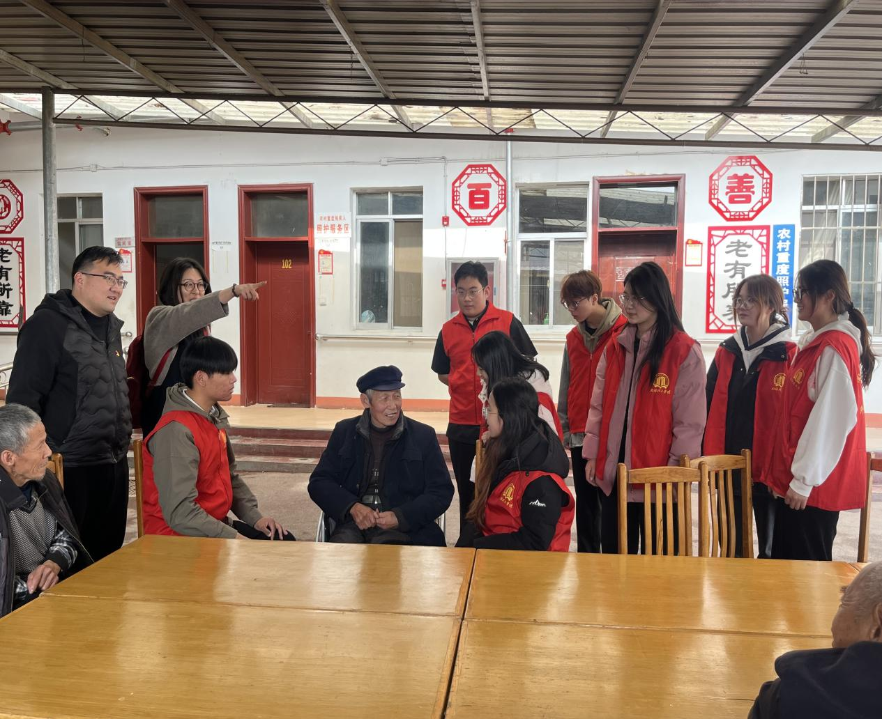 本网讯(通讯员/袁艺菲 温梦真)为弘扬中华民族爱老敬老的传统美德,11月22日,外国语学院院长赵万哲、外国语学院的志愿者们的,来到南召县城郊乡敬老院,开展了一次温暖的慰问活动。