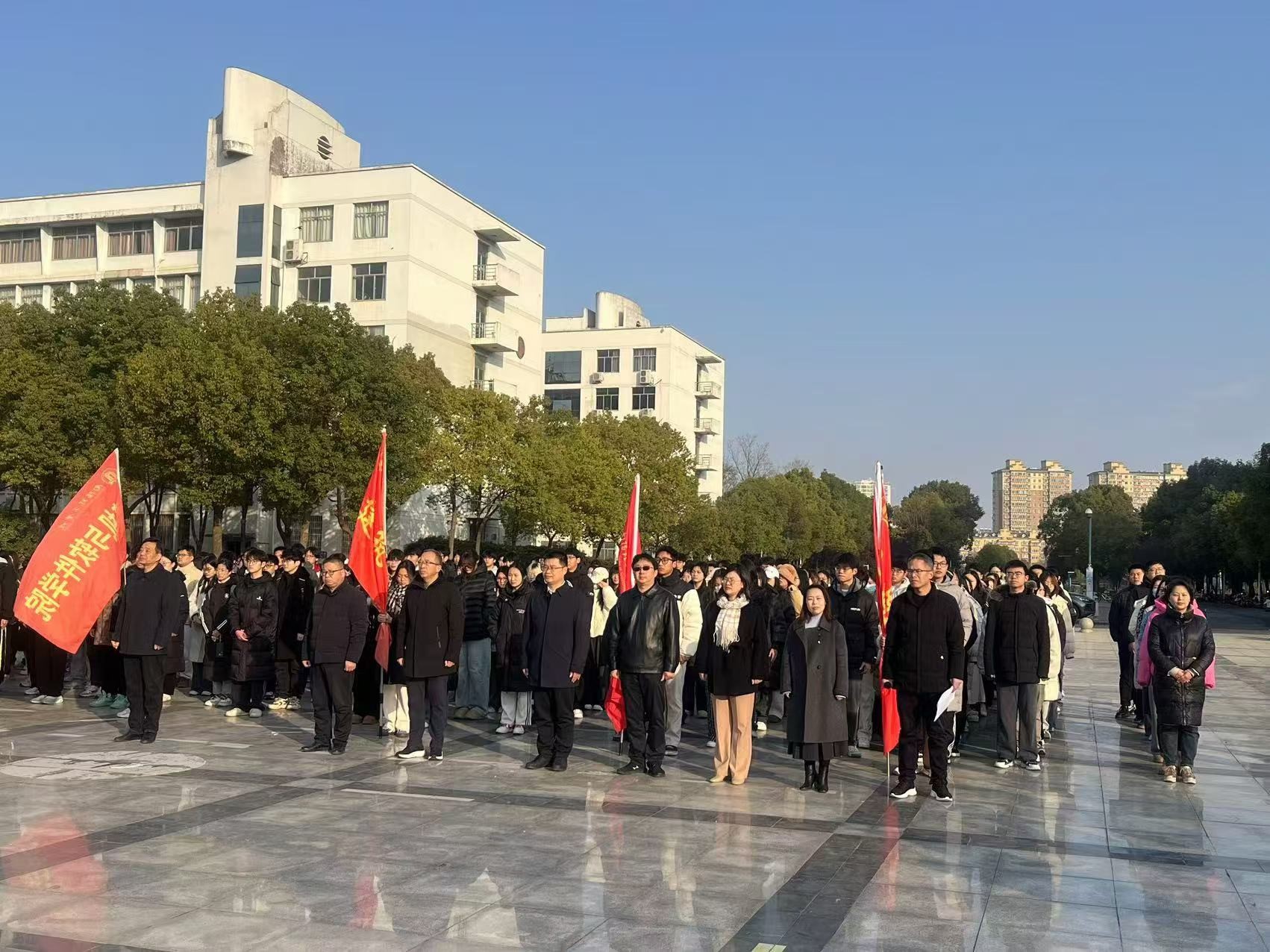 本网讯(通讯员/郝俊洁)以史为鉴,砥砺前行。为纪念第十一个国家公祭日,由学生处主办、外国语学院等6个学院联合承办的国家公祭日纪念活动在齐贤广场隆重举行。外国语学院党委书记李新宁、副书记李爽正、各年级辅导员及部分学生代表参加了本次活动。