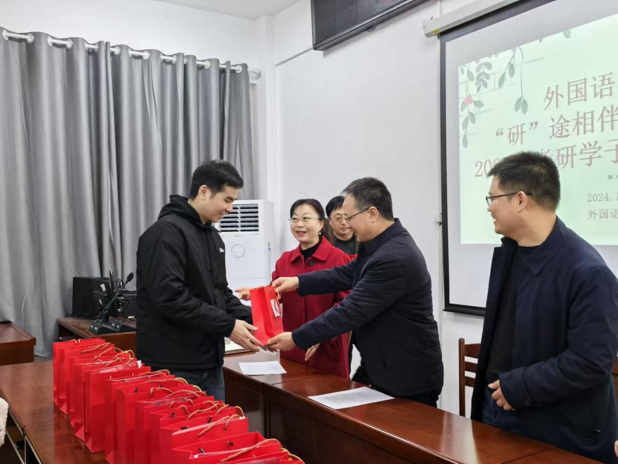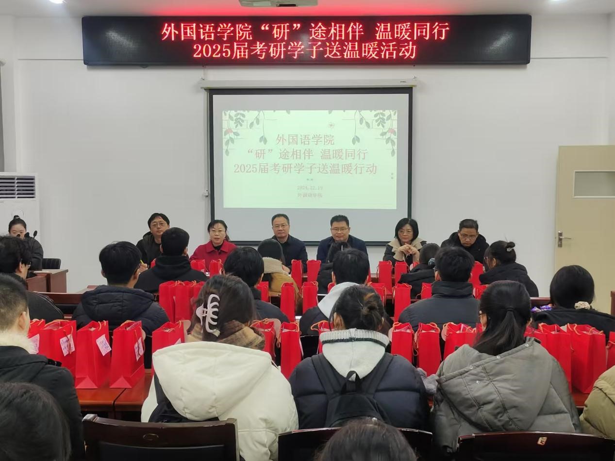 本网讯(通讯员/尚明萱)12月19日,外国语学院举行2025届毕业生考研送温暖活动。副校长蔡广宇出席活动,外国语学院相关负责人及2025届全体考研学子参加活动。