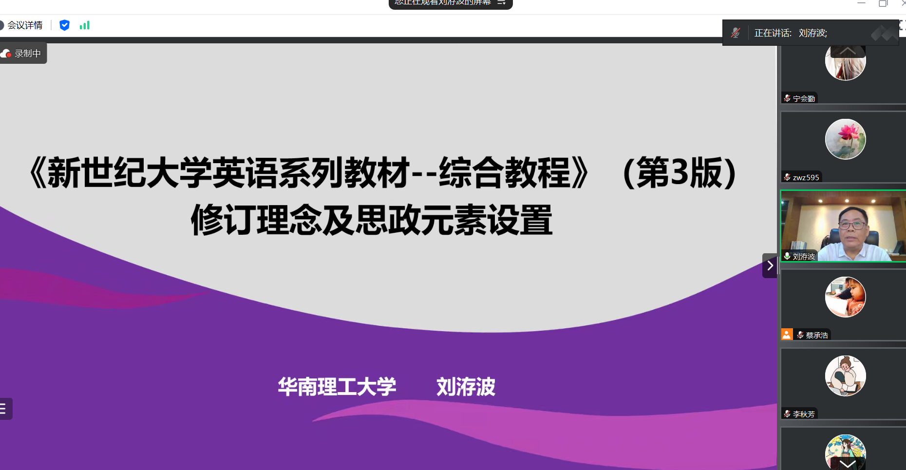 本次线上研讨会云端连线,名师领航教学前沿,智慧碰撞,共享教改实践真知。通过理念分享、课程体系构建、案例剖析三重维度,不仅深化了教师对《新世纪大学英语》教材核心价值的理解,更搭建起一个跨校协作平台,为河南省大学英语教学共建共享、提质增效注入强劲动能。(摄影/宁会勤 校对/崔俊阁 审核/李秋芳)