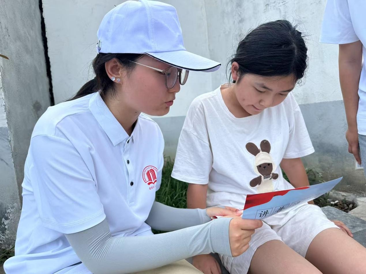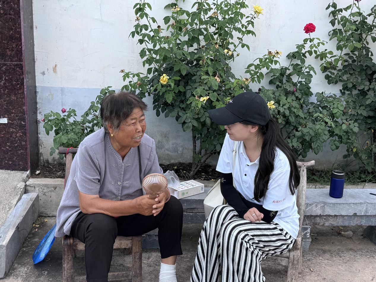 志愿服务队首站来到陈岭村,作为对南水北调工程做出杰出贡献的村庄,这里承载着太多南水北调移民的岁月记忆。在移民老人家中,队员们围坐聆听老人缓缓讲述为南水北调工程搬迁的经历,“我们的生活确实越来越好了”,老人们接连感叹道。在走访过程中,我们与村里小朋友开展趣味游戏,为孩子们分发学习用品与电动小风扇,队员们运用自身专业所学帮助他们识记音标,小小的礼物传递着关怀,一个个音标字母助力他们在逐梦路上大步前行,以青春温度,暖移民之乡情。