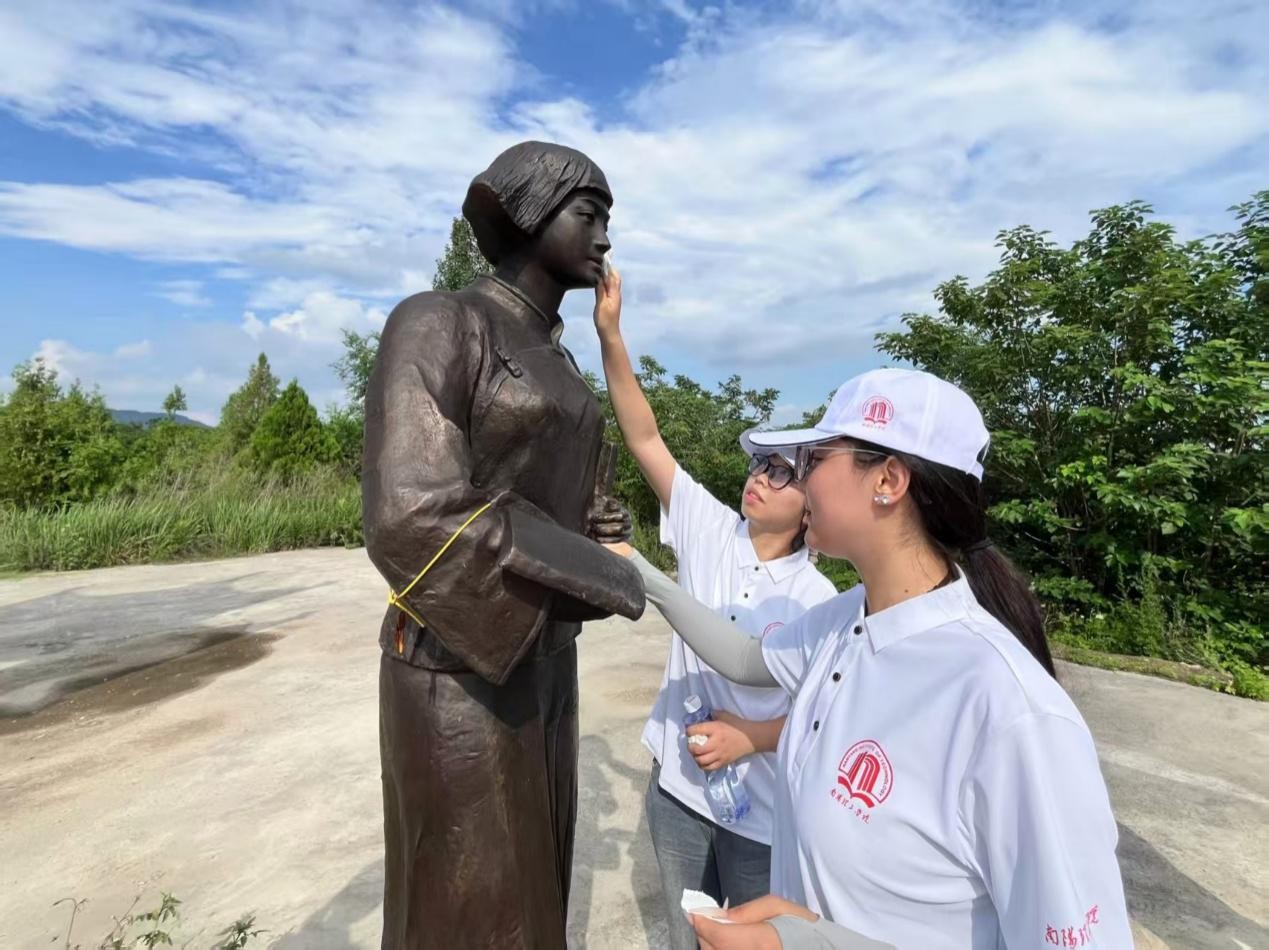 首日,团队抵达河南省立开封女中淅川办学纪念园,开封女中为躲避日寇战火,于1938年年初迁至淅川,在中共地下党组织的领导下,开封女中进步学生成立党支部和学生团体,积极投身救亡运动。队员俯身擦拭园区历史人物雕像,通过劳动实践表达对先辈的崇高敬意;结合实地参观深刻领悟师生在烽火中坚守教育救国的赤诚信念。随后转赴中原突围部队抢渡丹江纪念碑,聆听老师讲解1946年中原军区部队在敌军封锁下强渡丹江的浴血奋战史,誓言传承“抢渡精神”砥砺前行。