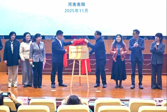 本网讯(特约记者/王玥晴)2025年11月15日,在“第二届中医药文化翻译与国际传播论坛”上,南阳理工学院外国语学院“区域国别研究中心”正式揭牌成立。河南省委外办与高校共建智库平台联盟理事长、河南中医药大学党委副书记张加民教授为中心揭牌,标志着我校在区域国别研究领域迈出关键一步,为推动学科交叉融合搭建起全新平台。