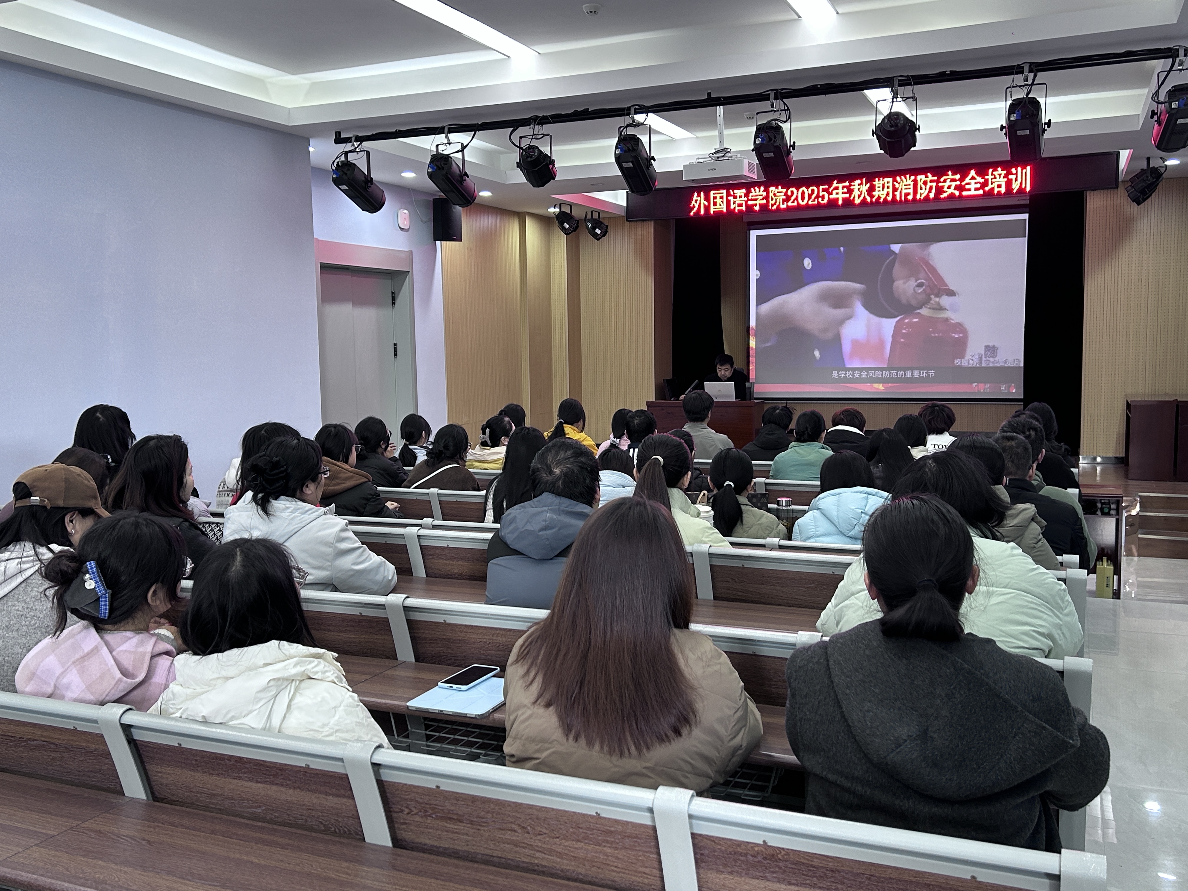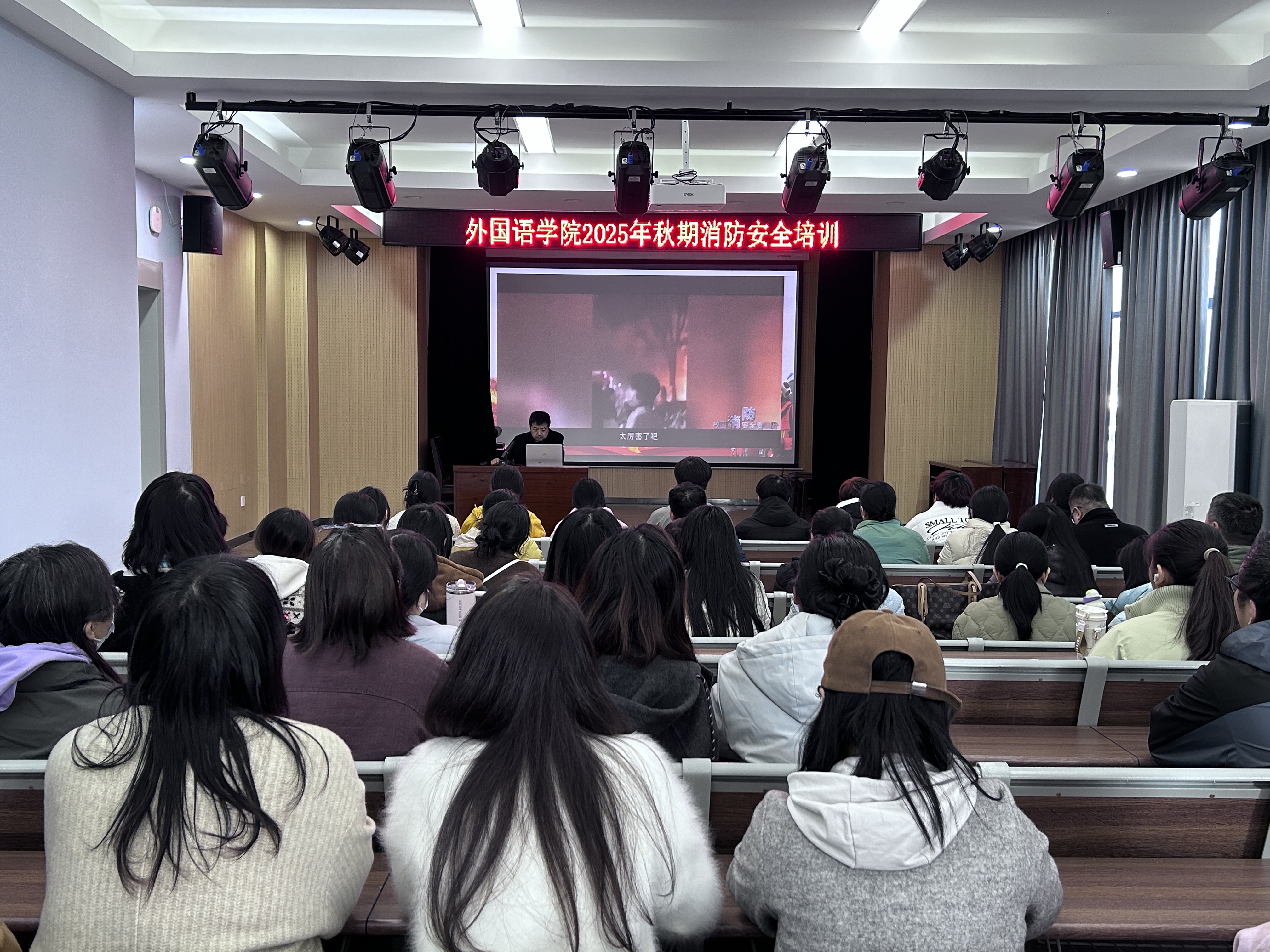 本网讯(通讯员/甄佳)为筑牢校园消防安全防线,提升师生消防安全意识与应急避险能力,11月25日,外国语学院于19教105教室开展2025年秋期消防安全培训,学院师生积极参会,特邀保卫处消防科科长刘涛担任主讲人。培训围绕校园火灾预防、隐患排查、应急处置等核心内容展开,切实夯实师生消防安全防护基础。