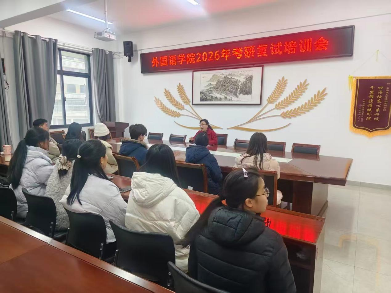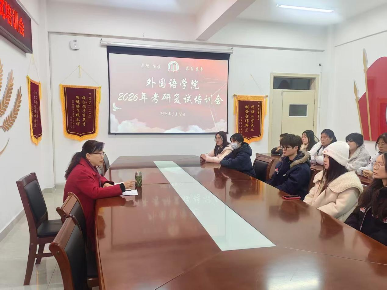 本网讯(通讯员/韦琪琪)为帮助考研学子冲刺复试、顺利上岸,2026年3月17日,外国语学院于19教201室举办考研复试培训会,院长赵万哲为进入复试的学子提供指导与支持。