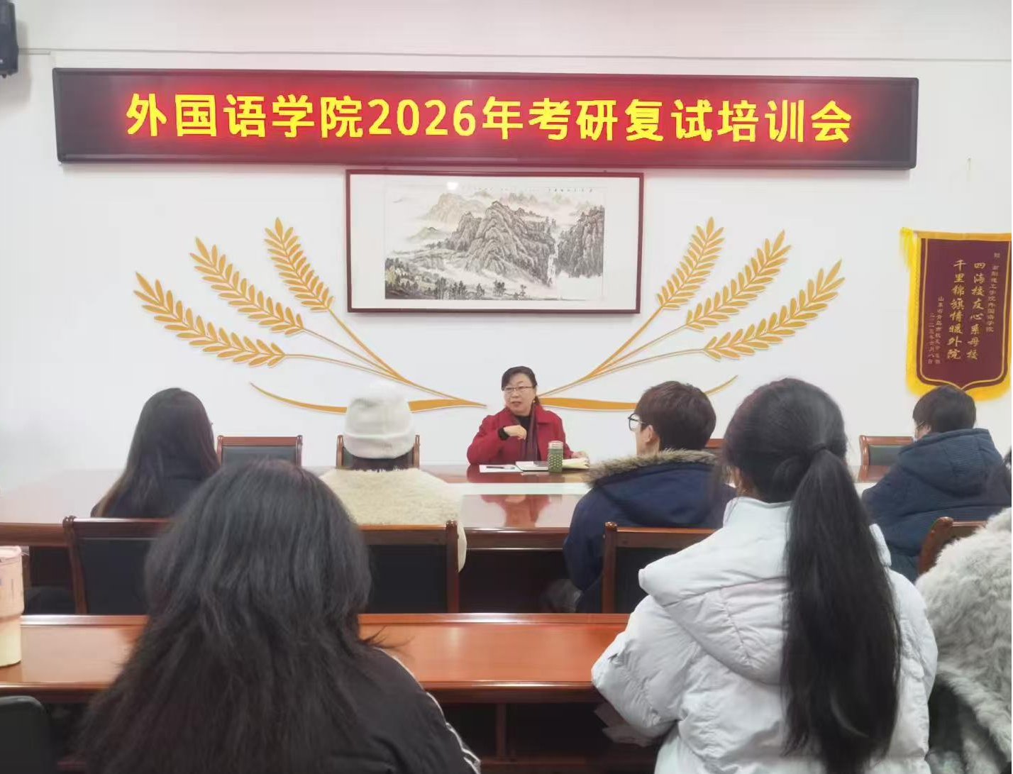 学院遴选7名经验丰富的教师组成面试指导团队,紧扣考研复试核心要求,结合专业及学生复试院校特色,分设英语组、跨考组、日语组同步开展现场模拟,从自我介绍、专业问答到综合素养考察,全真还原复试场景。面试结束后,指导教师针对每位学生的现场表现,从语言表达、答题思路、礼仪规范等方面细致点评,一对一给出针对性改善建议,帮助学子在实战中发现问题、补齐短板,切实提升应试信心与实战能力。