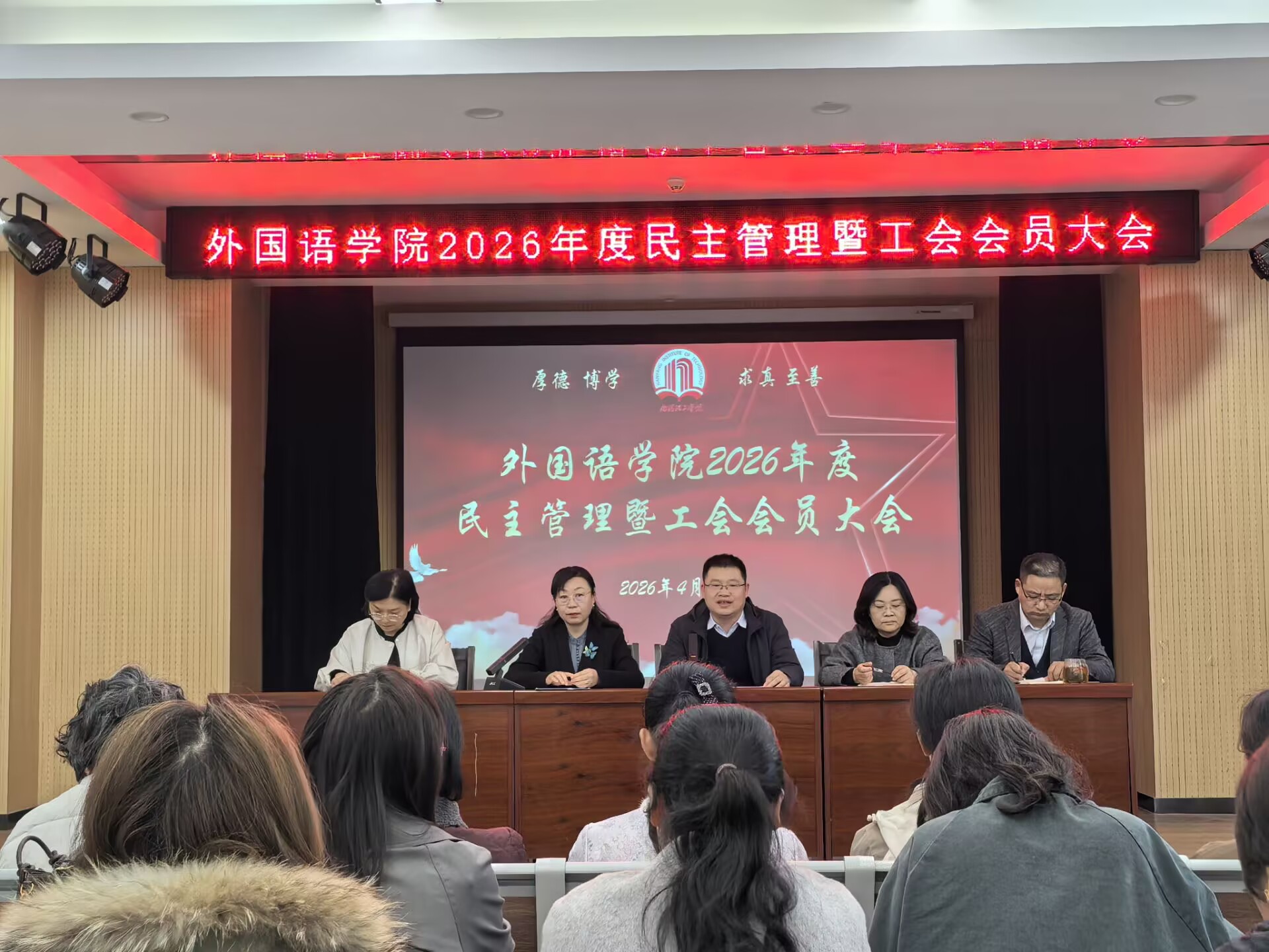 会议指出,此次大会是一次统一思想、凝聚共识、鼓舞干劲、共谋发展的大会。全院教职工要以此为契机,进一步强化责任担当、凝聚奋进力量,紧扣2026年目标任务,立足岗位、真抓实干,在学科建设上求突破,在人才培养上提质量,在教学科研上出成果,在社会服务上显担当,在分工会建设上聚合力,共同推动外国语学院内涵式发展、智能化转型再上新台阶,为学校建设特色鲜明的高水平应用型大学积极贡献外语力量。