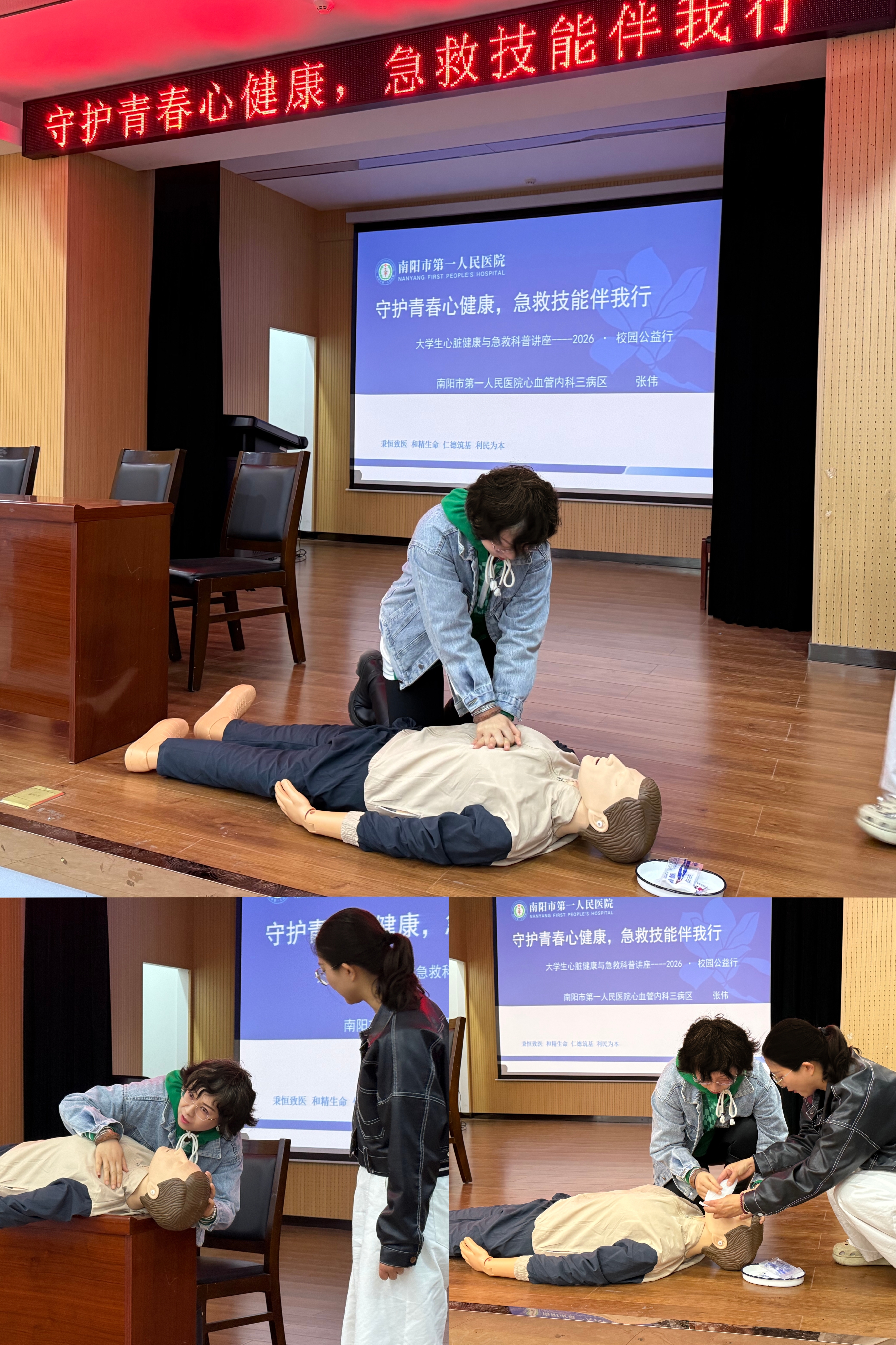 本网讯(特约记者/来蔓均)为进一步提升师生健康素养,普及应急救护知识与技能,强化生命安全意识,外国语学院于4月28日开展“守护青春心健康,急救技能伴我行”2026年春季健康知识讲座与竞答活动。本次活动特邀南阳市第一人民医院心血管内三科护士长张伟为学院师生带来了一场兼具专业性与实用性的健康科普盛宴。