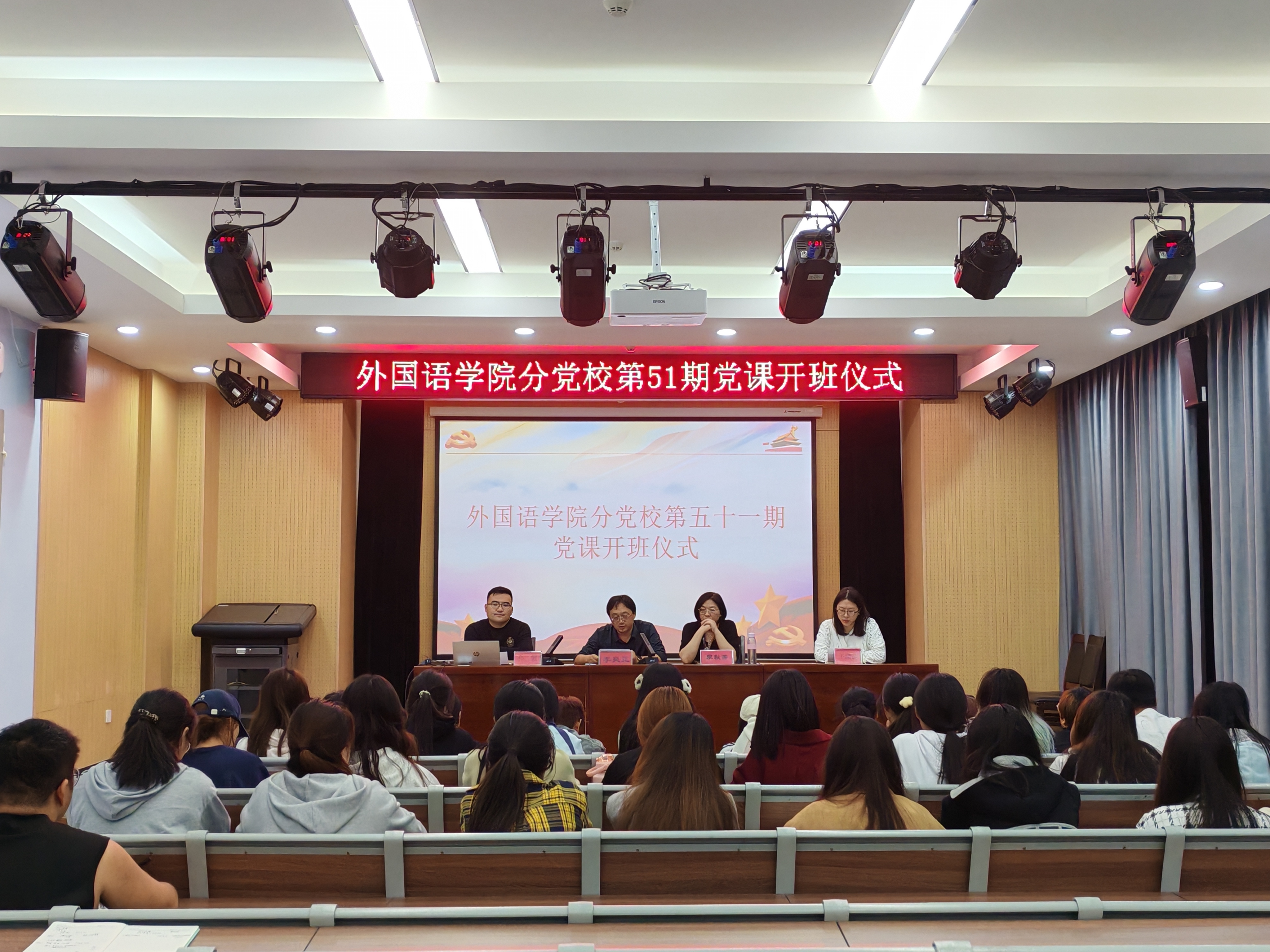 本网讯(通讯员/周文慧)为提升入党积极分子的政治素养,增强其政治认同与思想认同,坚定理想信念,为党组织培养优秀的后备力量,外国语学院于10月15日在19教105举行了第51期党课开班仪式。仪式由外国语学院第一学生党支部书记孙健主持,外国语学院副院长李秋芳、党委副书记李爽正、专职组织员王潇菡,及第51期入党积极分子参加。