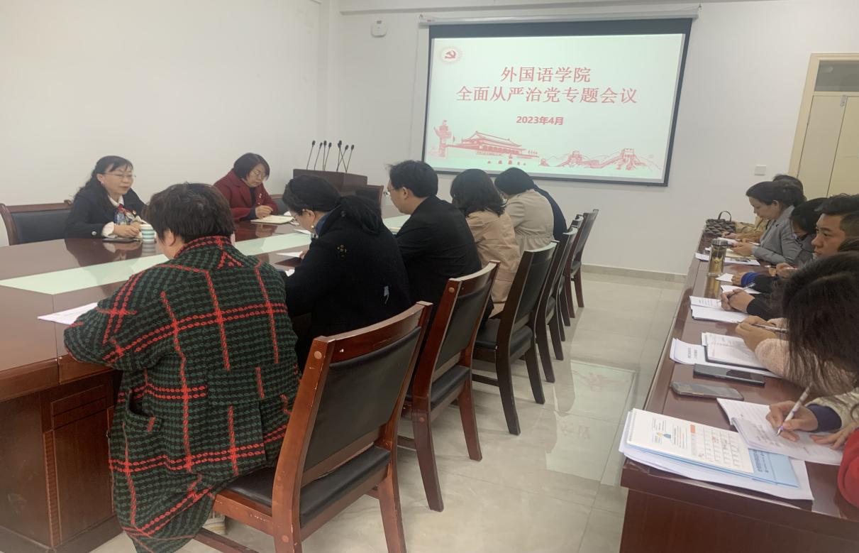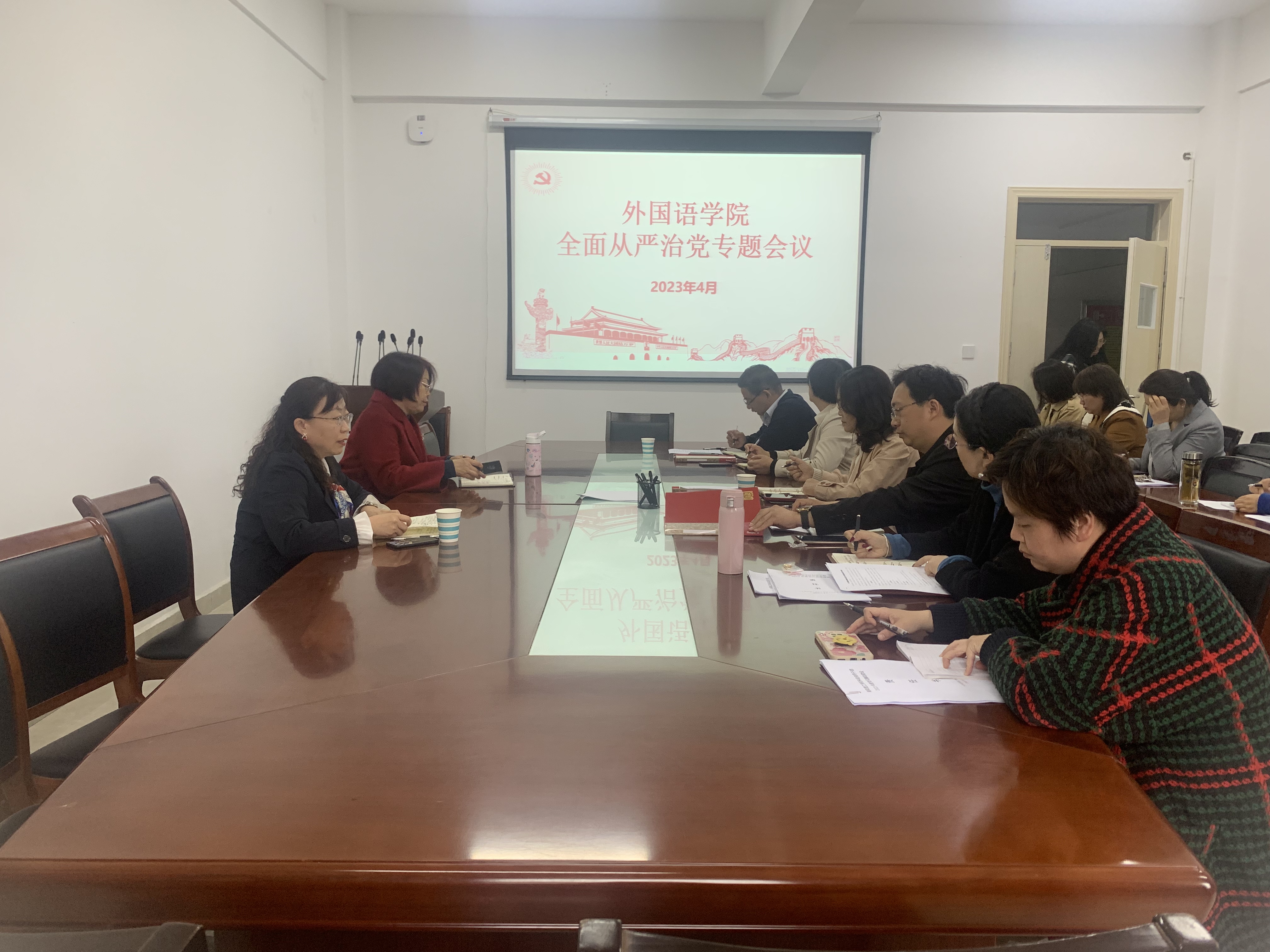 本网讯(学生通讯员/赵慧)为深入学习贯彻党的二十大精神、二十届中央纪委二次全会和十九届历次全会精神,分析当前全面从严治党面临的新形势新任务新要求,坚定不移全面从严治党,深入推进新时代党的建设新的伟大工程纵深发展,外国语学院于2023年4月7日在19号教学楼201会议室召开春期全面从严治党专题会议。会议由党委书记赵万哲主持,全体科级以上领导干部参加。