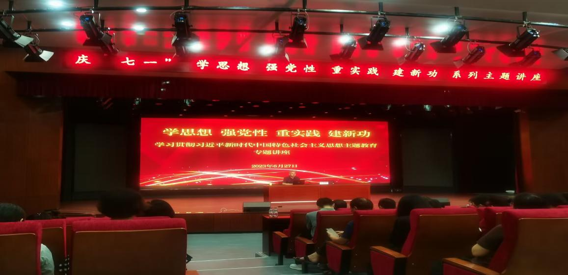 本网讯(通讯员/赵慧)为持续推动学习贯彻习近平新时代中国特色社会主义思想主题教育走深走实,6月27日,外国语学院全体在岗党员干部在21教演播厅参加庆“七一”学思想、强党性、重实践、建新功系列主题讲座。