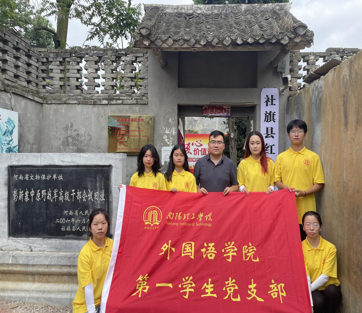 本网讯(通讯员/孙健 袁艺菲)为迎接“七一”建党节,外国语学院第一学生党支部到南阳市爱国主义教育示范基地社旗彰新寨纪念馆开展党日活动,支部书记孙健在纪念馆为同学们上党课,在实地实景中深情回顾党的奋斗历史,讴歌党的丰功伟绩。