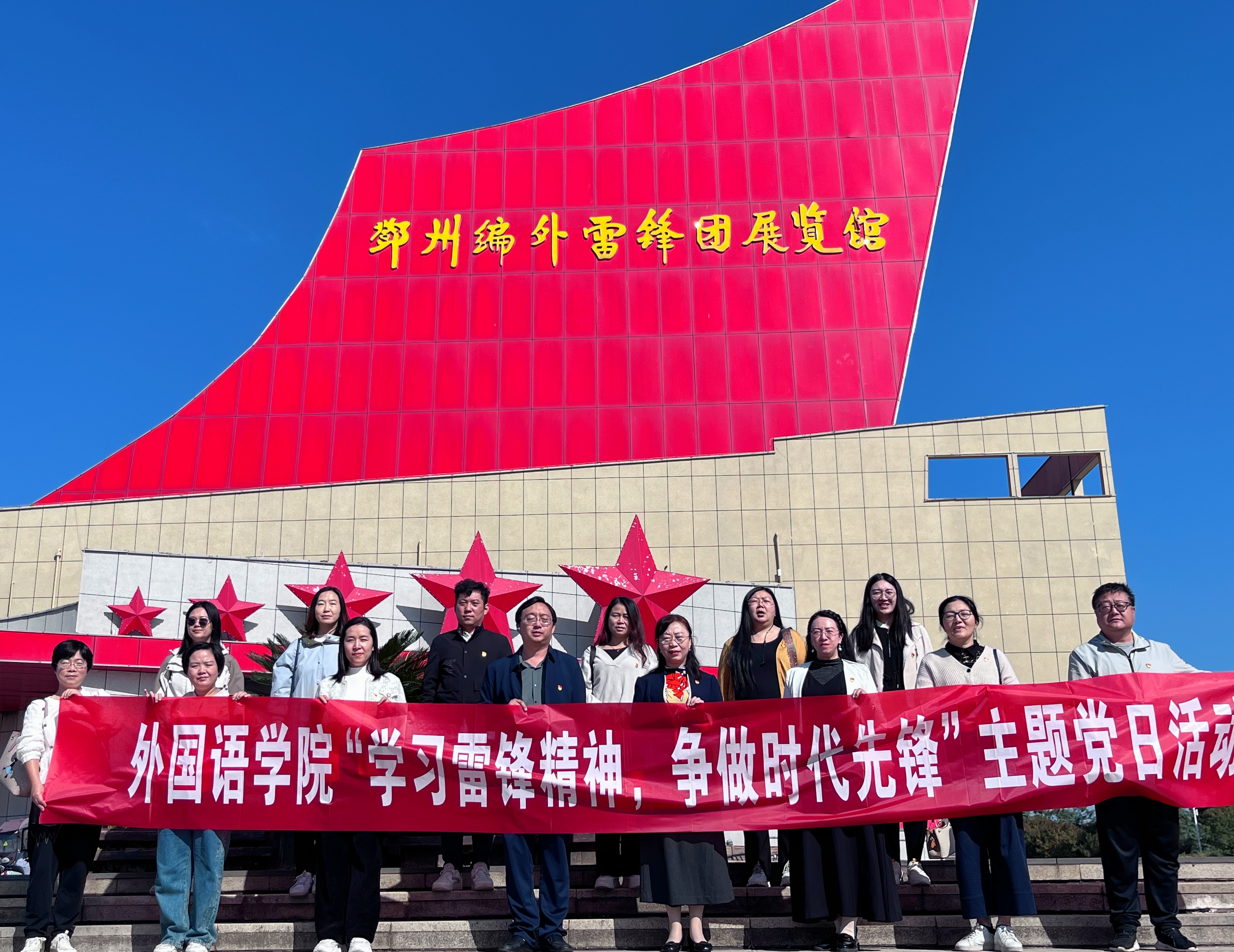 本网讯(通讯员/李旭平)为学习雷锋精神,团结学院党内建设,凝结学院党委的精、气、魂,鼓励同志们将雷锋精神贯彻执行到工作中去,争做时代先锋。10月20日,外国语学院党委组织各支部党员代表赴邓州开展“学习雷锋精神,争做时代先锋”主题党日活动。