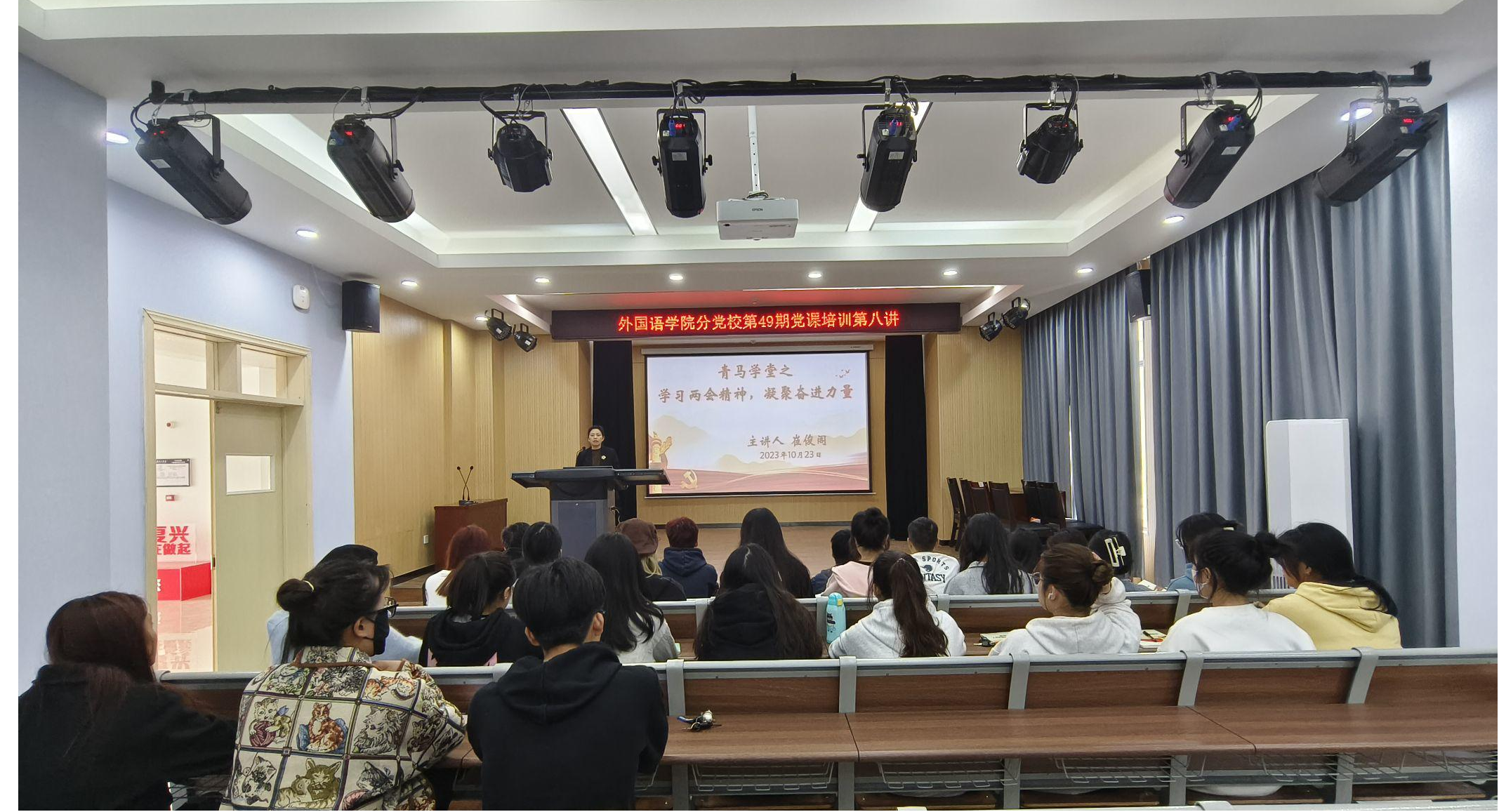 本网讯(通讯员/李莹)为进一步提升入党积极分子对两会精神的认识,牢筑思想精神阵地,外国语学院分党校于10月23日在19号教学楼105教室开展第八讲《学习两会精神,凝聚奋进力量》,由外国语学院教务办主任崔俊阁主讲,第49期入党积极分子参加。