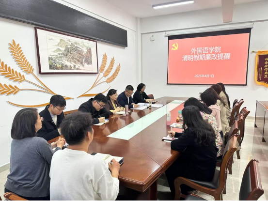 本网讯(记者/王潇菡)4月1日,在清明节即将来临之际,为进一步强化党风廉政建设,增强全体教职工廉洁自律意识,营造风清气正的节日氛围,外国语学院在19号楼201会议室召开了清明节廉政提醒会,学院科级以上干部参加。