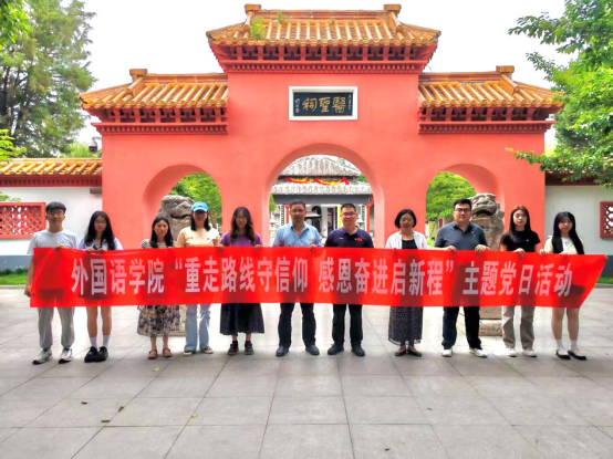 本网讯(通讯员/冯乙朗)为深入学习贯彻习近平新时代中国特色社会主义思想,引导广大党员传承红色基因,牢记初心使命。5月12日,外国语学院党委组织师生党员代表开展“重走路线守信仰 感恩奋进启新程”主题党日活动。沿着习近平总书记的足迹,让党员在历史纵深与产业浪潮中感悟信仰伟力,感受红色基因与文化根脉在新时代焕发光彩,汲取奋进力量,以感恩之心续写育人新篇。