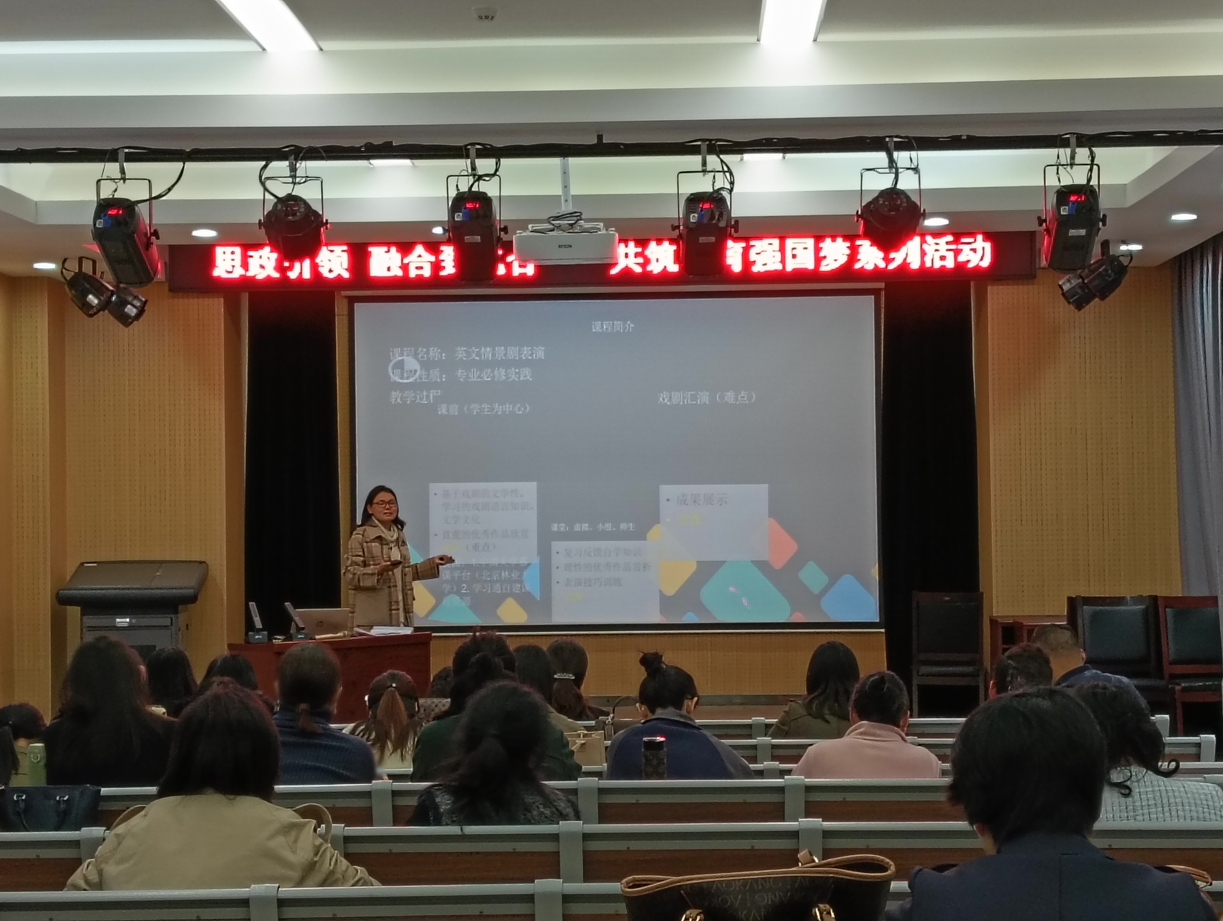本网讯(特约记者/宁会勤)11月5日下午,外国语学院在19105举办了“思政引领——共筑教育强国梦”课程思政实践展演课。