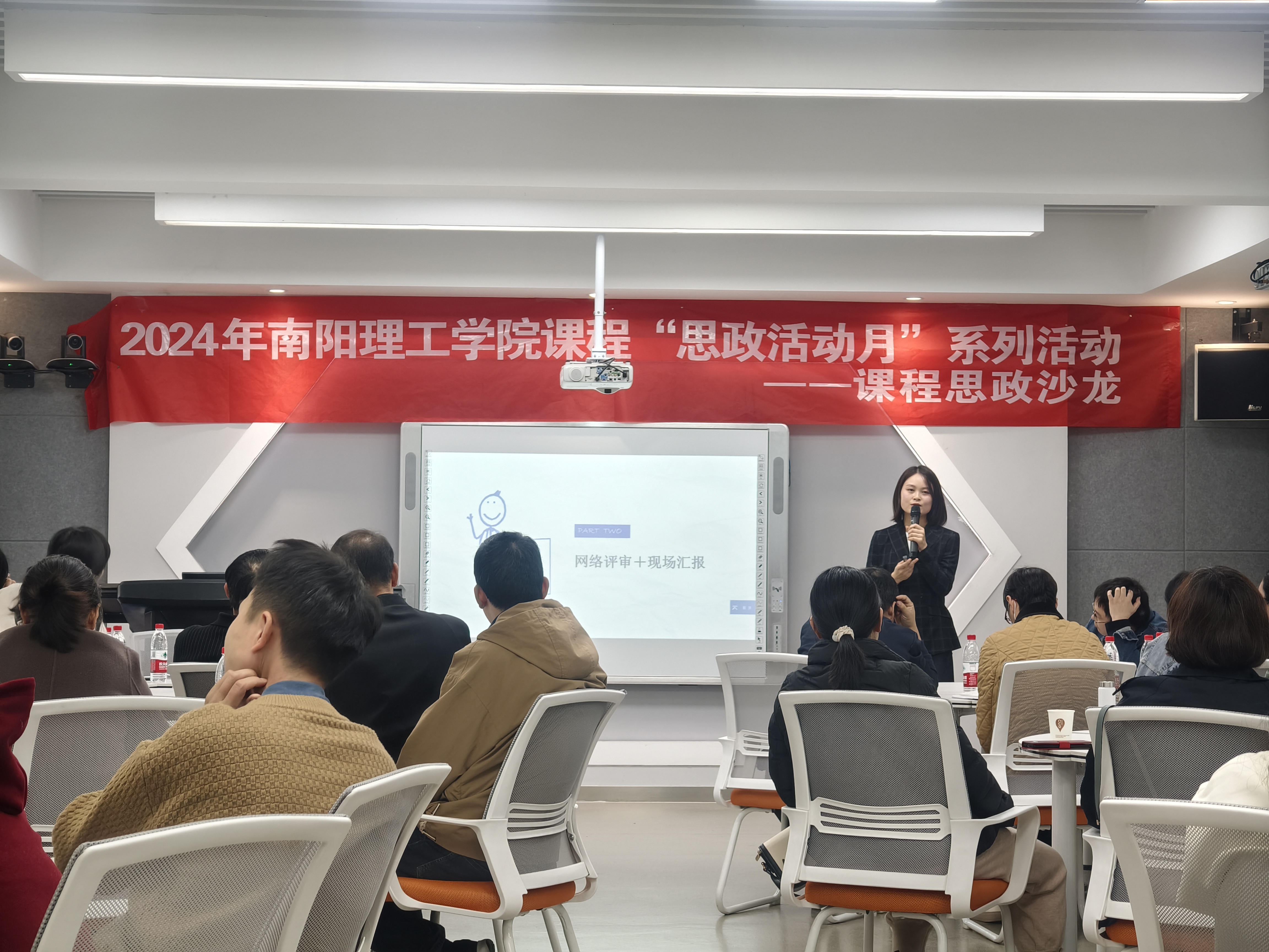 吴倩倩分享了自己在参加全国课程思政教学创新比赛中的比赛经历和参赛心得,并从什么是课程思政、怎么融以及取得的成效如何三个方面进行了陈述。还特别提到在课程思政教学中融入点提炼的三次改写经过,使在座老师受益匪浅。她认为,立德树人是课程思政的根本目标,重点是如何融盐于水。