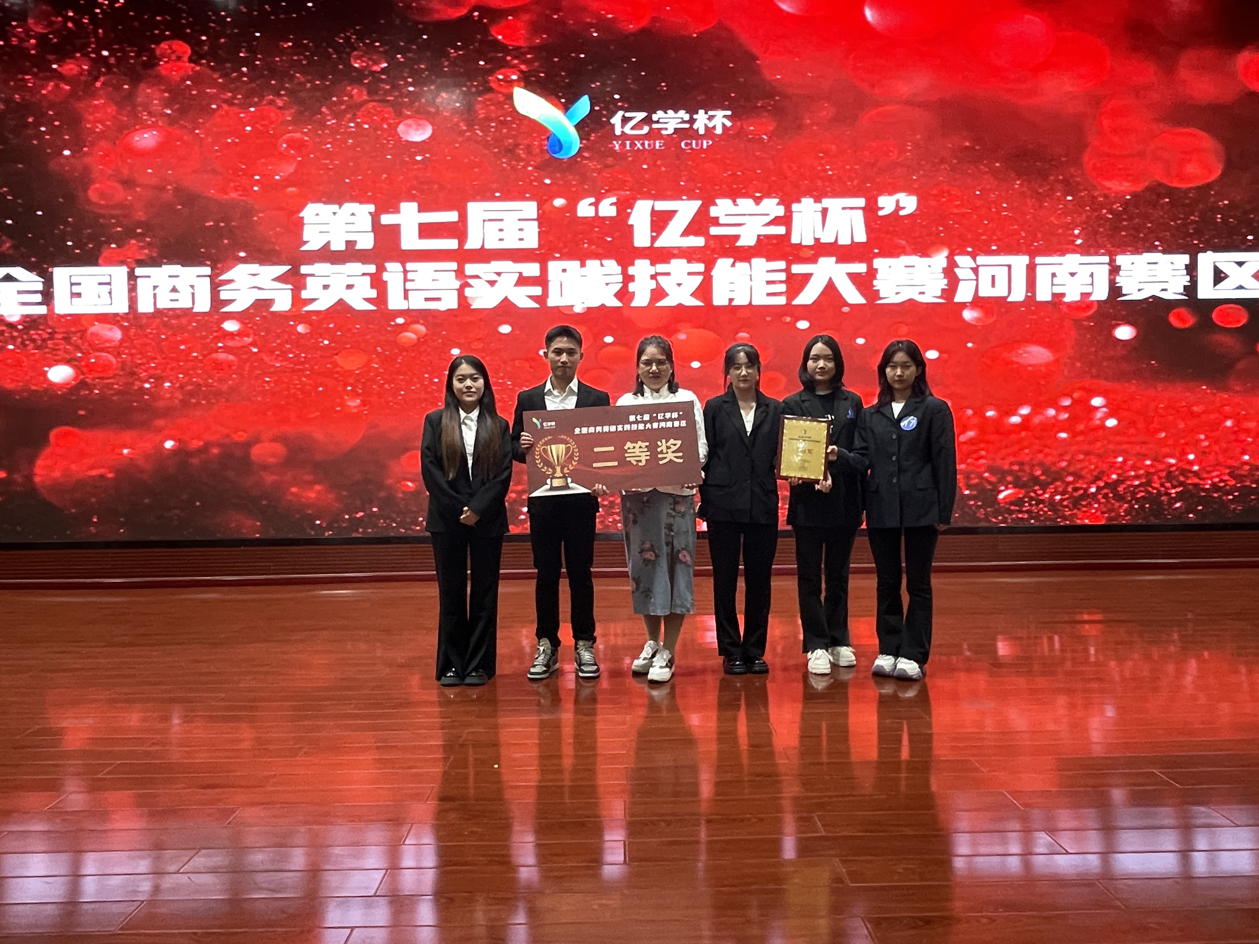 “亿学杯”全国商务英语实践技能大赛是河南省高等学校大学生学科竞赛省级竞赛项目。来自省内30所高等院校的56支队伍参加初赛,24支队伍进入本次省决赛。竞赛分为商务英语实践技能竞赛平台操作和实践技能现场比赛两个环节。外国语学院团队5位同学通过刻苦学习和不懈训练,最终在全省24支队参赛院校中获得了第七名,荣获二等奖并晋级国赛。