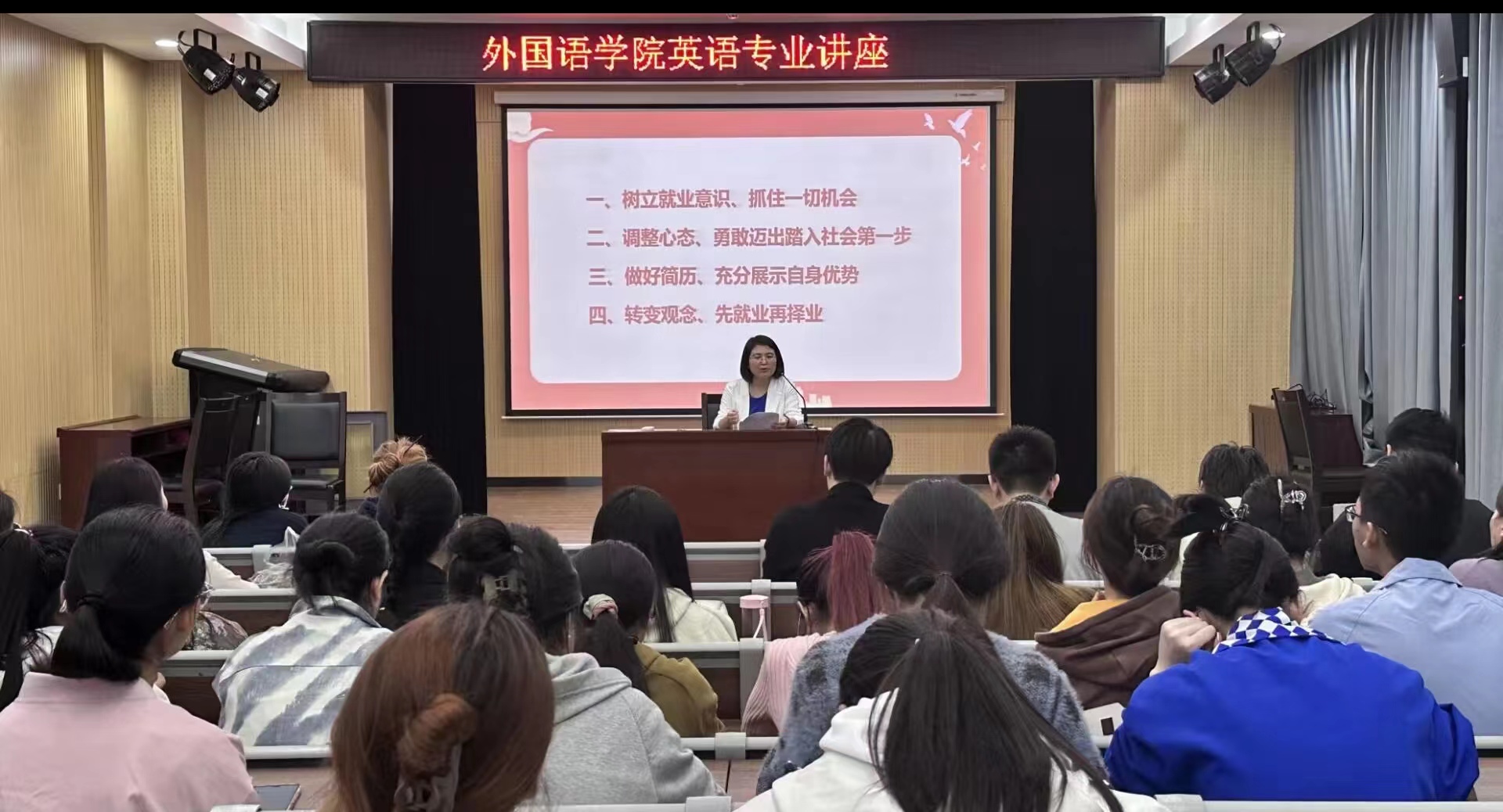 本网讯(特约记者/刘婷婷)10月9日晚,外国语学院英语专业在19号楼105多功能室举行了2024届毕业生就业指导专题讲座。本次讲座由英语专业教研室主任王玥晴主讲,2024届全体毕业生参加。