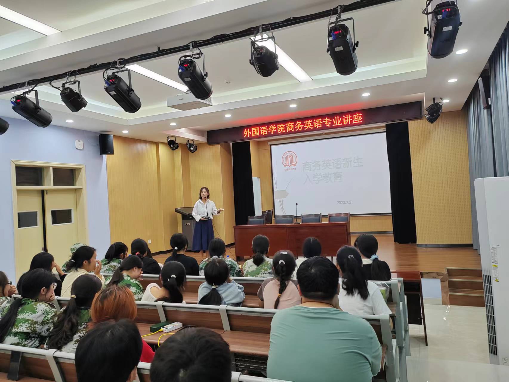 本网讯(通讯员/王子瑞) 9月21日晚,外国语学院商务英语专业2023级新生入学教育暨导师见面会在19号教学楼105教室顺利举行。商务英语专业负责人、教研室主任解靓,学业导师宋琳璟、王子瑞及商务英语专业2023级全体新生参加此次见面会。