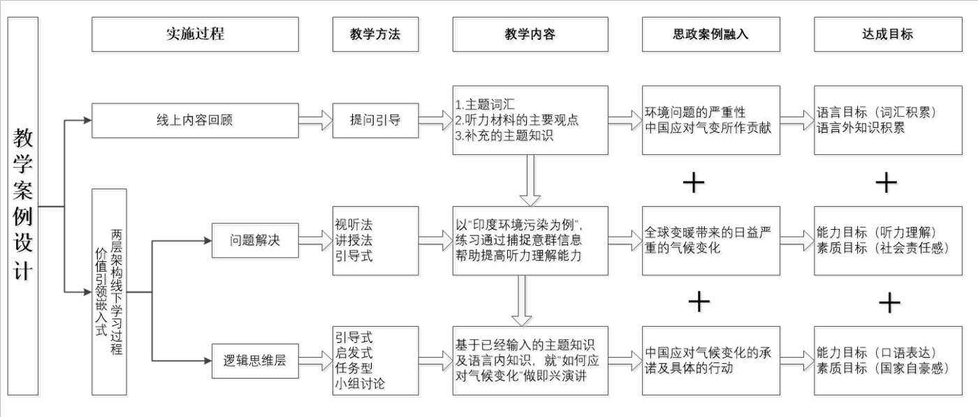 围绕世界气候变化,将全球变暖带来的严重后果、有关第26届联合国气候变化大会(COP26)基本常识以及中国在应对气候变化中的大国行动和方案三方面的内容形成一个连贯的教学案例,提升学生环保意识、增强学生得社会责任感、夯实学生的国家认同感和自豪感。
