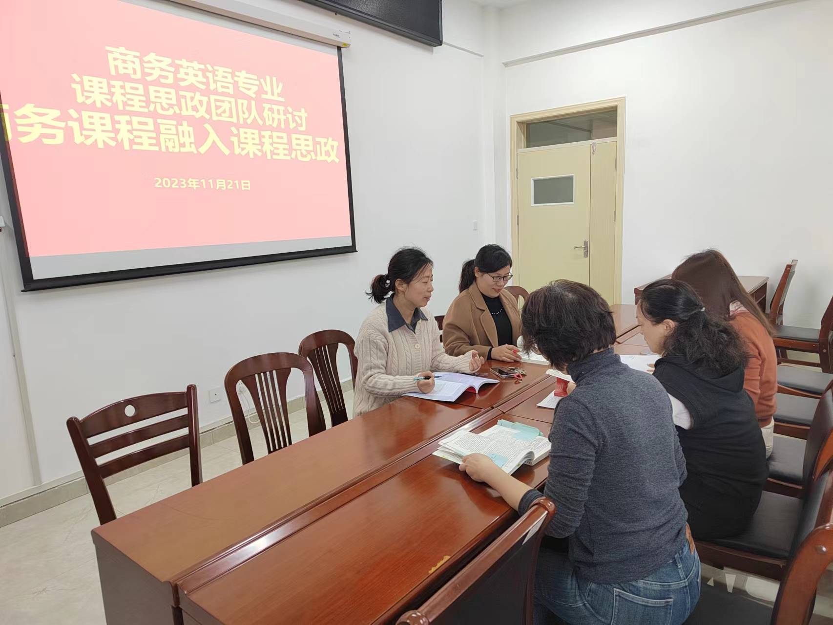 本网讯(通讯员/王子瑞)2023年11月21日,外国语学院商务英语教研室在19202会议室举行了一场关于商务课程融入课程思政的专题研讨会。研讨会的重点是探索如何将思政教育与商务英语课程有效地结合起来,以此提升学生的思想素质和国际视野。