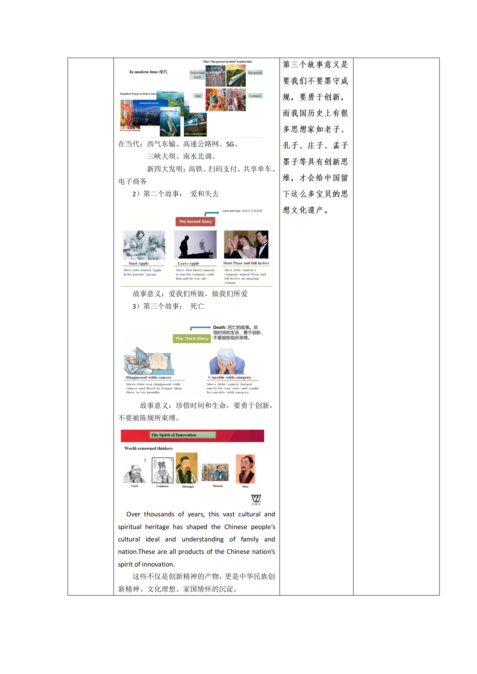 4.掌握文章大意和乔布斯三个故事梗概及故事阐明的意义,并深入了解我国从古至今所取得的举世瞩目的创新成就;