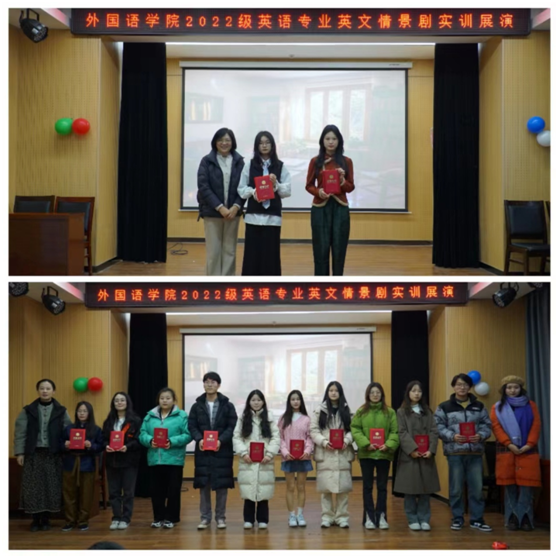 整场演出精彩纷呈,高潮迭起,欢乐中夹杂着感动,真切体会到家乡的发展来自一个个平凡小人物无私的付出与坚守。英语情景剧展演是英语专业的一门专业必修实践课,由学生自编、自导、自演。课程通过“以演促学”的教学模式,以“讲好中国故事”为导向,把课程内容与学生社会实践结合起来,推动社会大课堂和校内课堂有机结合。这不仅有利于培养学生的英语综合应用能力和创新实践能力,而且有利于传播中国独具特、充满智慧的地域文化,讲好中国故事。(摄影/朱士甜 校对/王玥晴 审核/李秋芳 责编/李康)