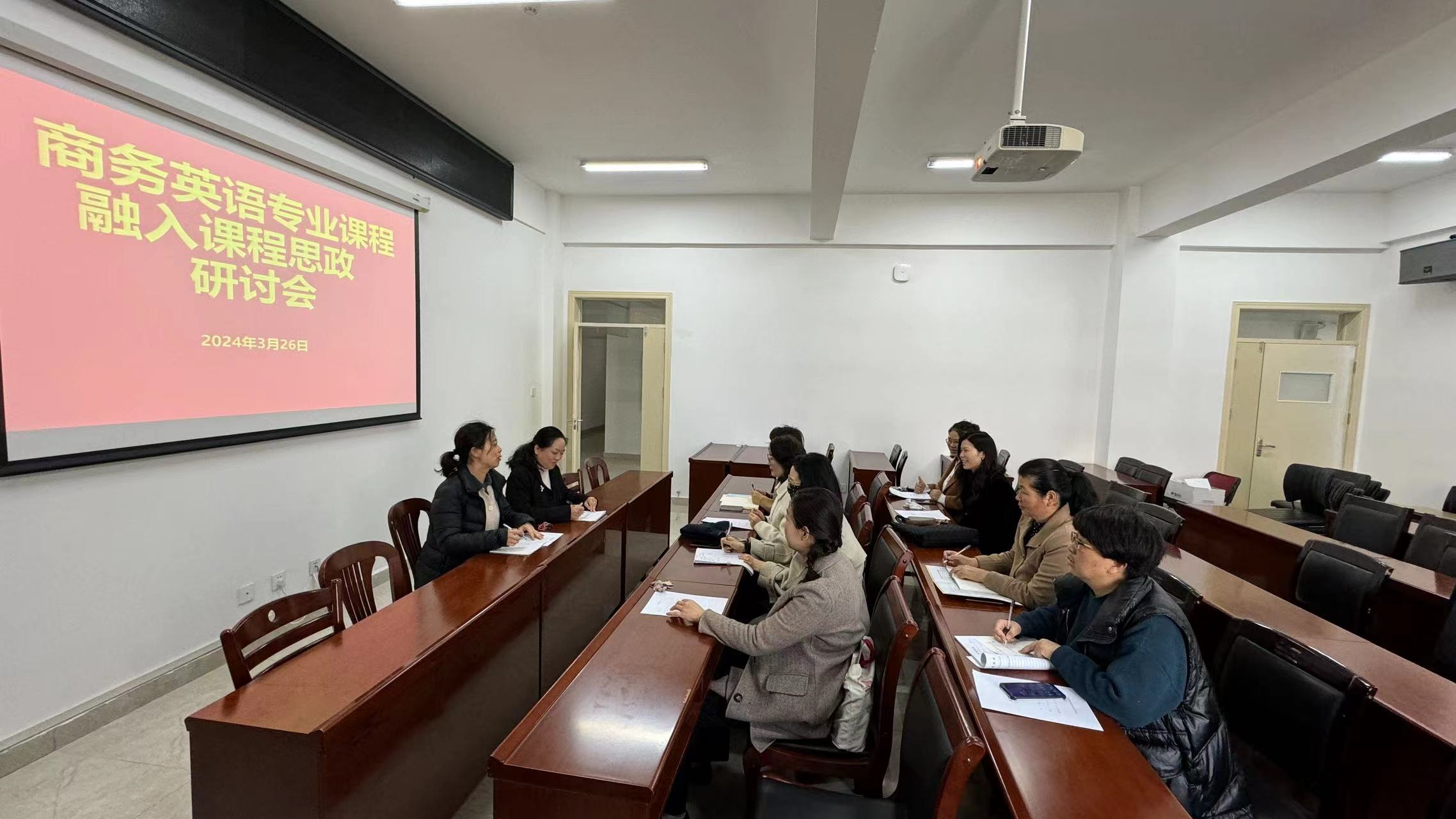 本网讯(通讯员/王子瑞)随着课程思政的不断推进,为进一步探讨如何有效结合商务英语教学与思政教育,商务英语专业于2024年3月26日,举办了一场课程思政融入商务英语专业课程的研讨活动。