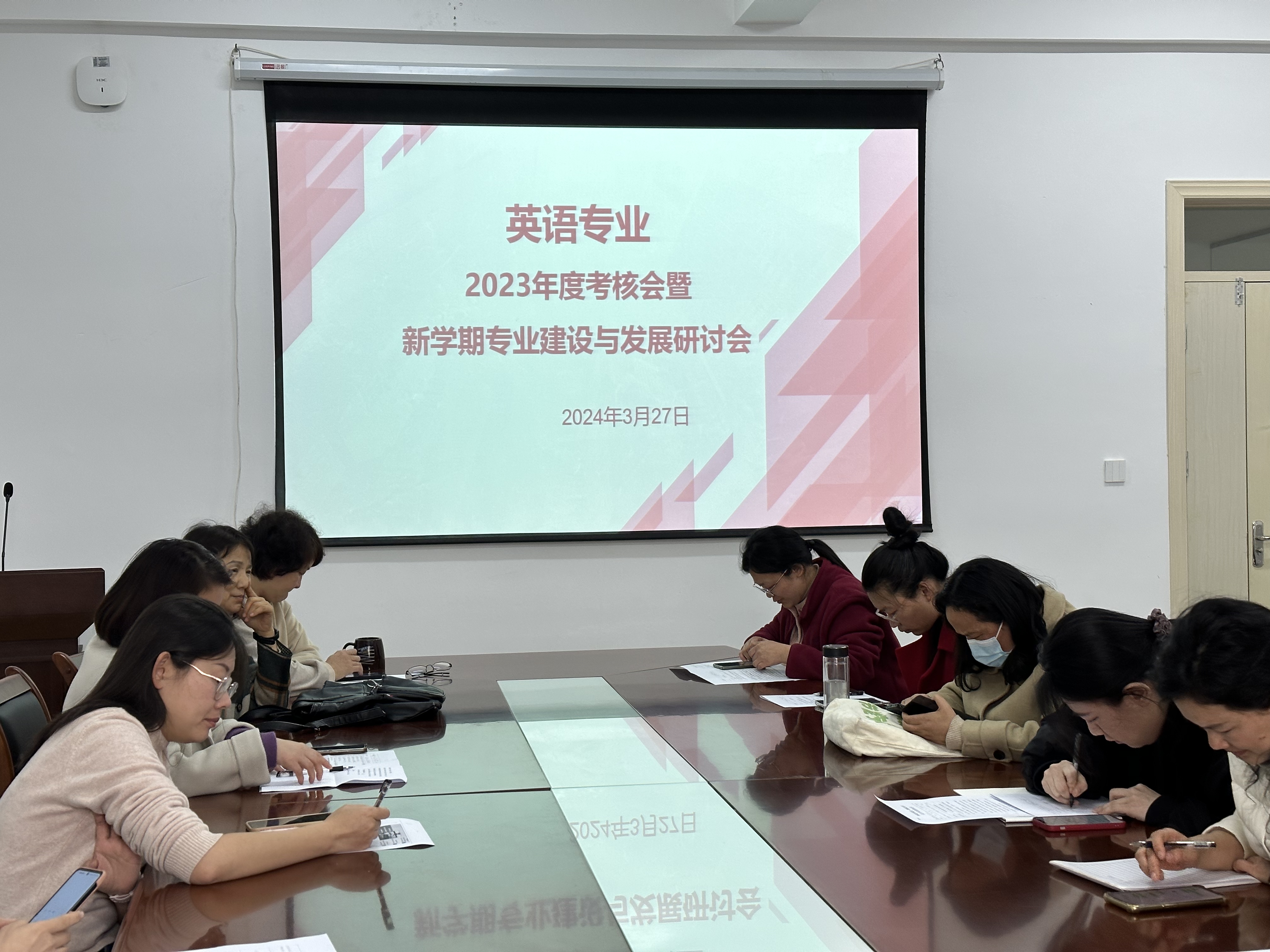 本讯网(特约记者 杜阳)3月27日中午,外国语学院英语专业在19201会议室召开2023年度考核会暨新学期专业建设与发展研讨会。会议由英语专业负责人王玥晴主持,英语教研室全体教师参会。
