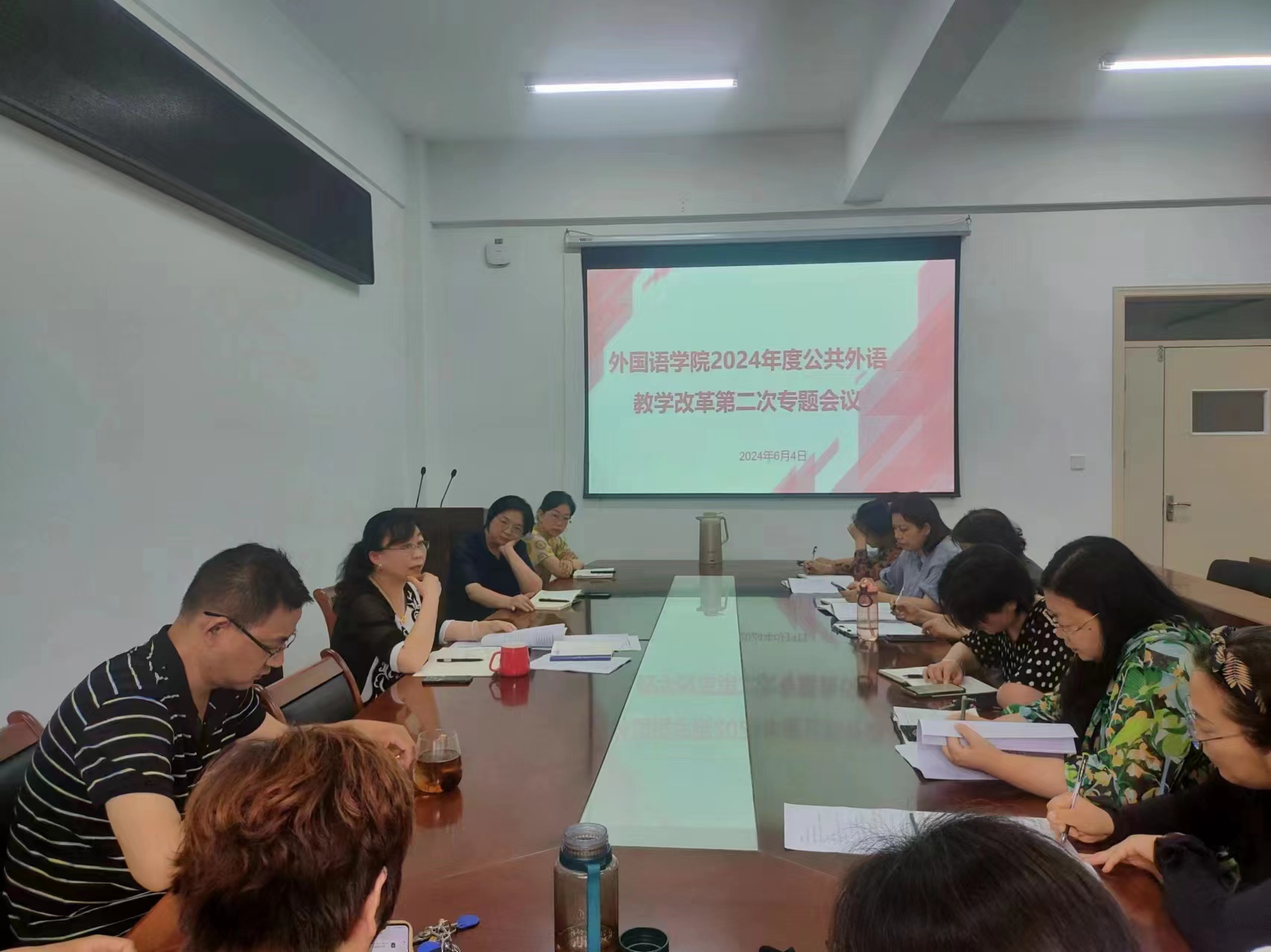 本网讯(特约记者 崔俊阁)外国语学院于2024年6月4日上午在19-201会议室召开了2024年度公共外语教学改革第二次专题会议。本次会议外国语学院院长赵万哲主持,教学副院长李秋芳、学院副院长张亚楠、教务办主任、公共外语教研室主任及教研室骨干教师参加。
