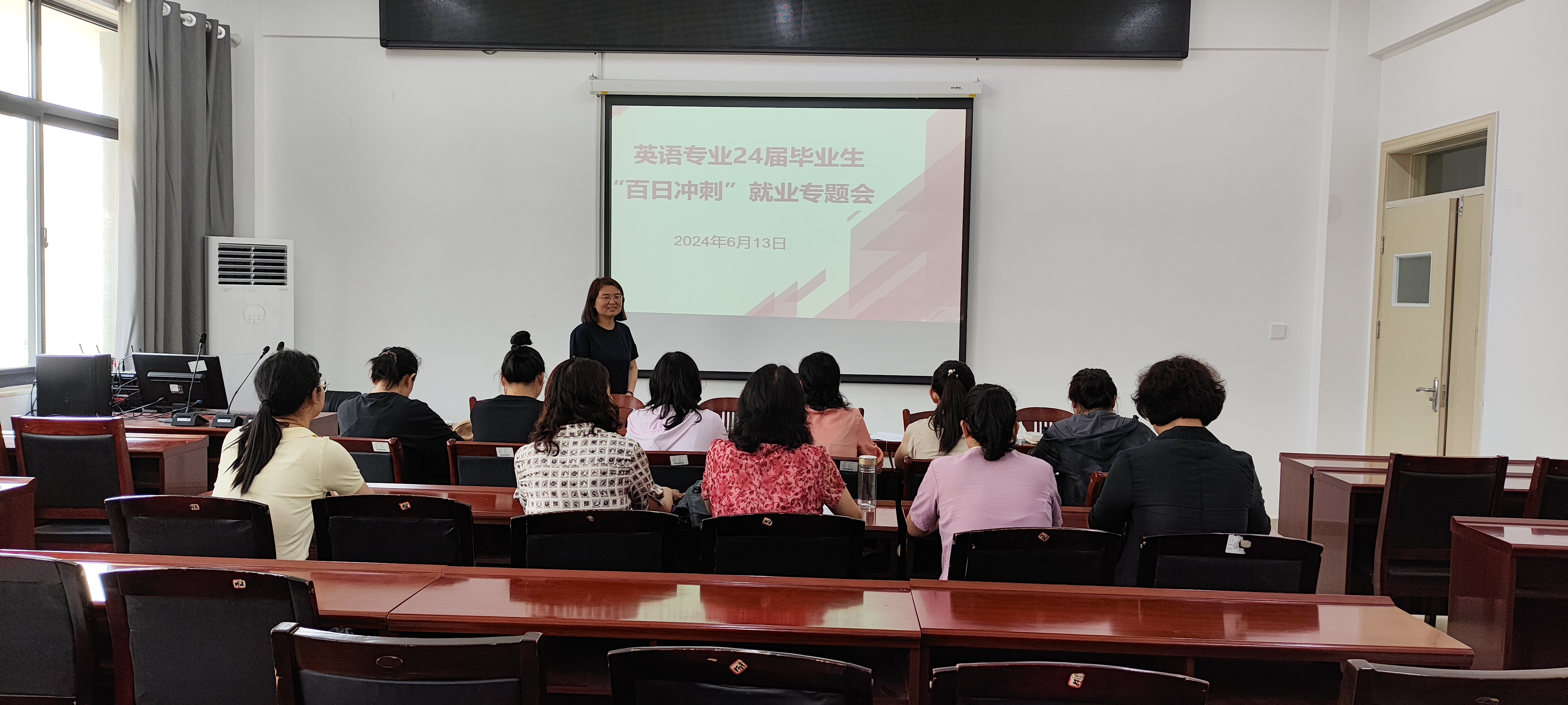 本讯网(特约记者 杜阳)6月13日下午,外国语学院英语专业在19202会议室召开2024届毕业生“百日冲刺”就业专题会。会议由英语教研室主任王玥晴主持,英语教研室全体教师参会。