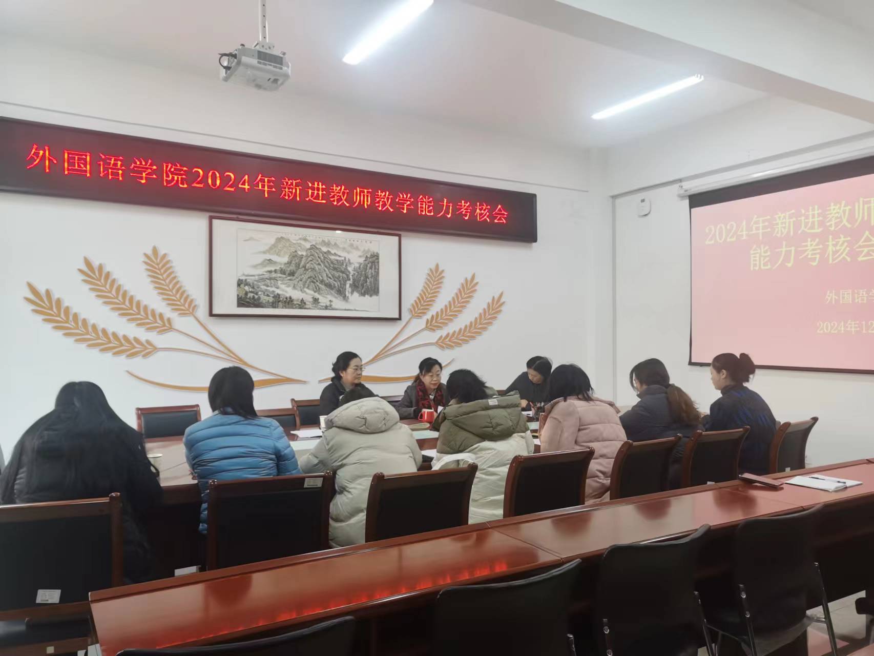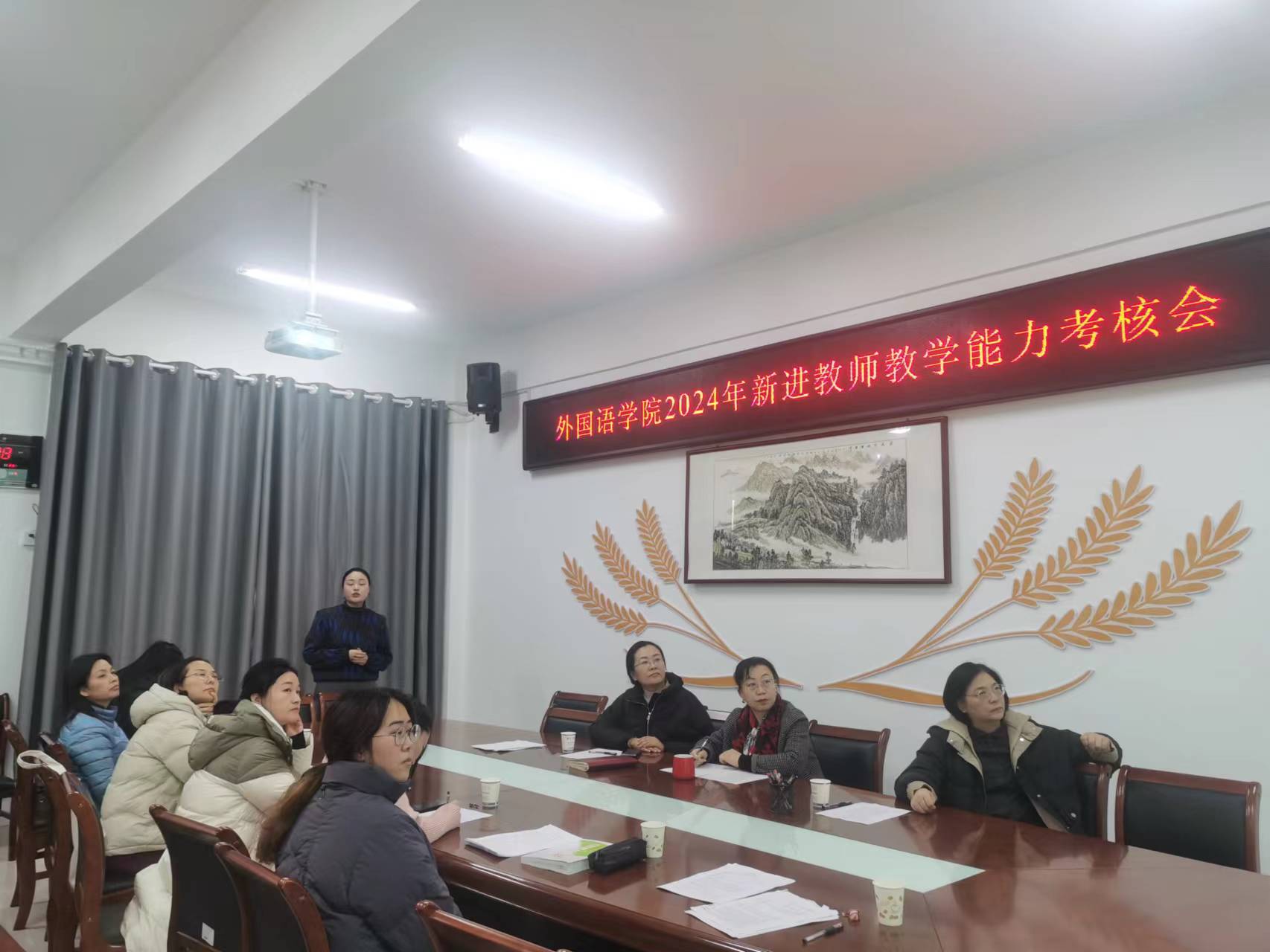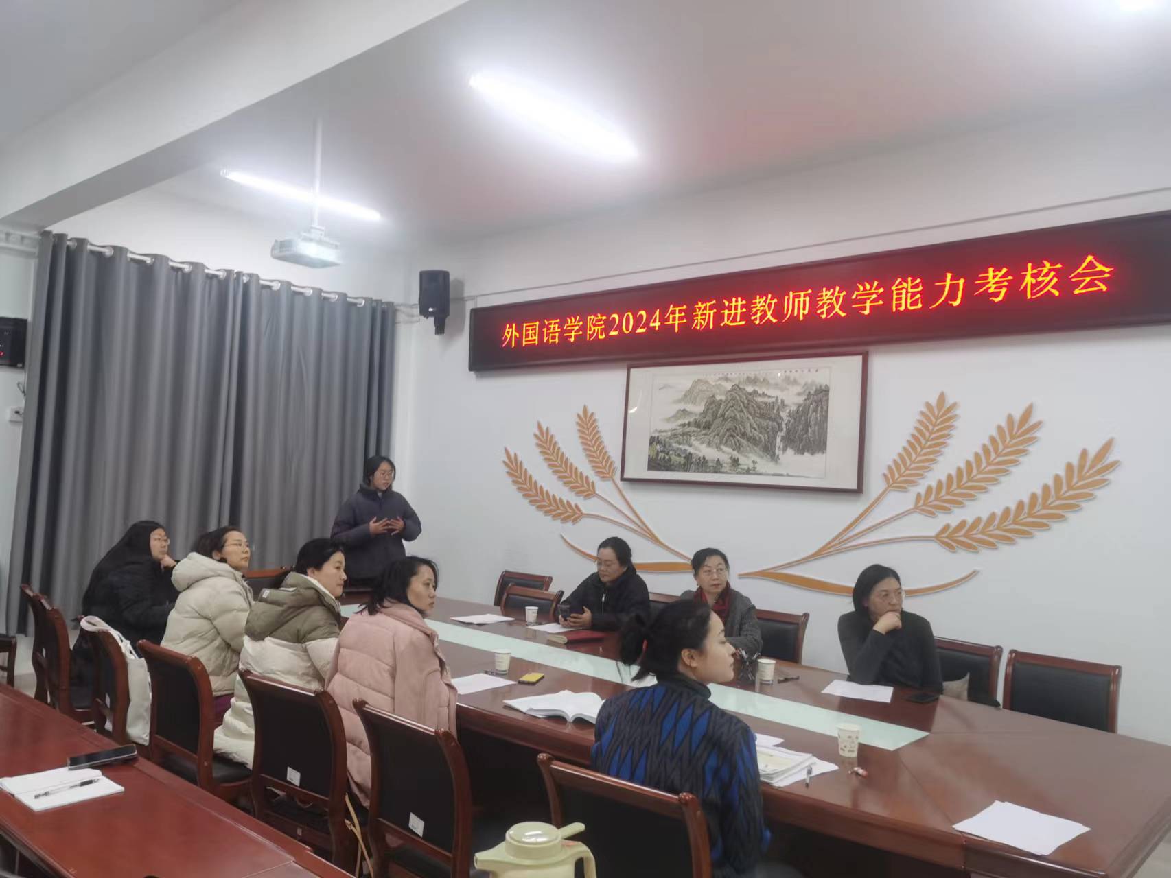 本网讯(通讯员/李康)12月27日,外国语学院在201会议室举行2024年新进教师教学能力考核会。徐伊扬、贾琦两位新入职教师参与了此次考核,由教学委员会担任评委。
