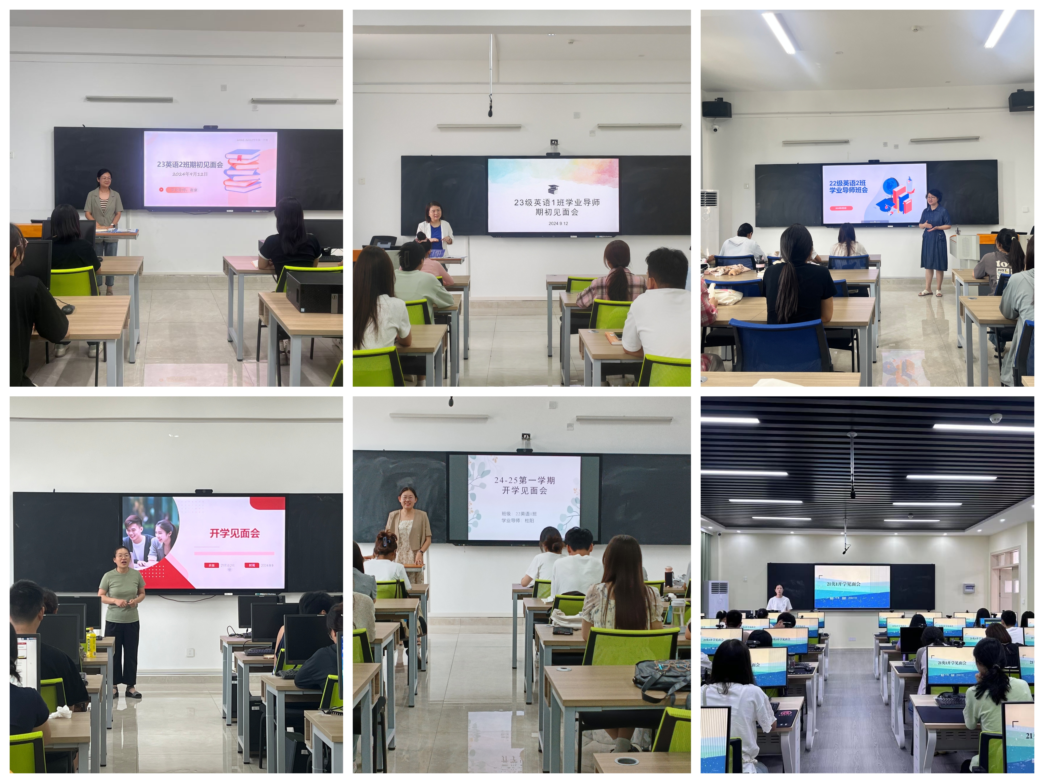 本网讯(通讯员/杜阳)随着新学期的帷幕缓缓拉开,我校英语专业学业导师纷纷在班内组织召开了新学期师生见面会,旨在明确新学期的学习目标,规划学业蓝图。