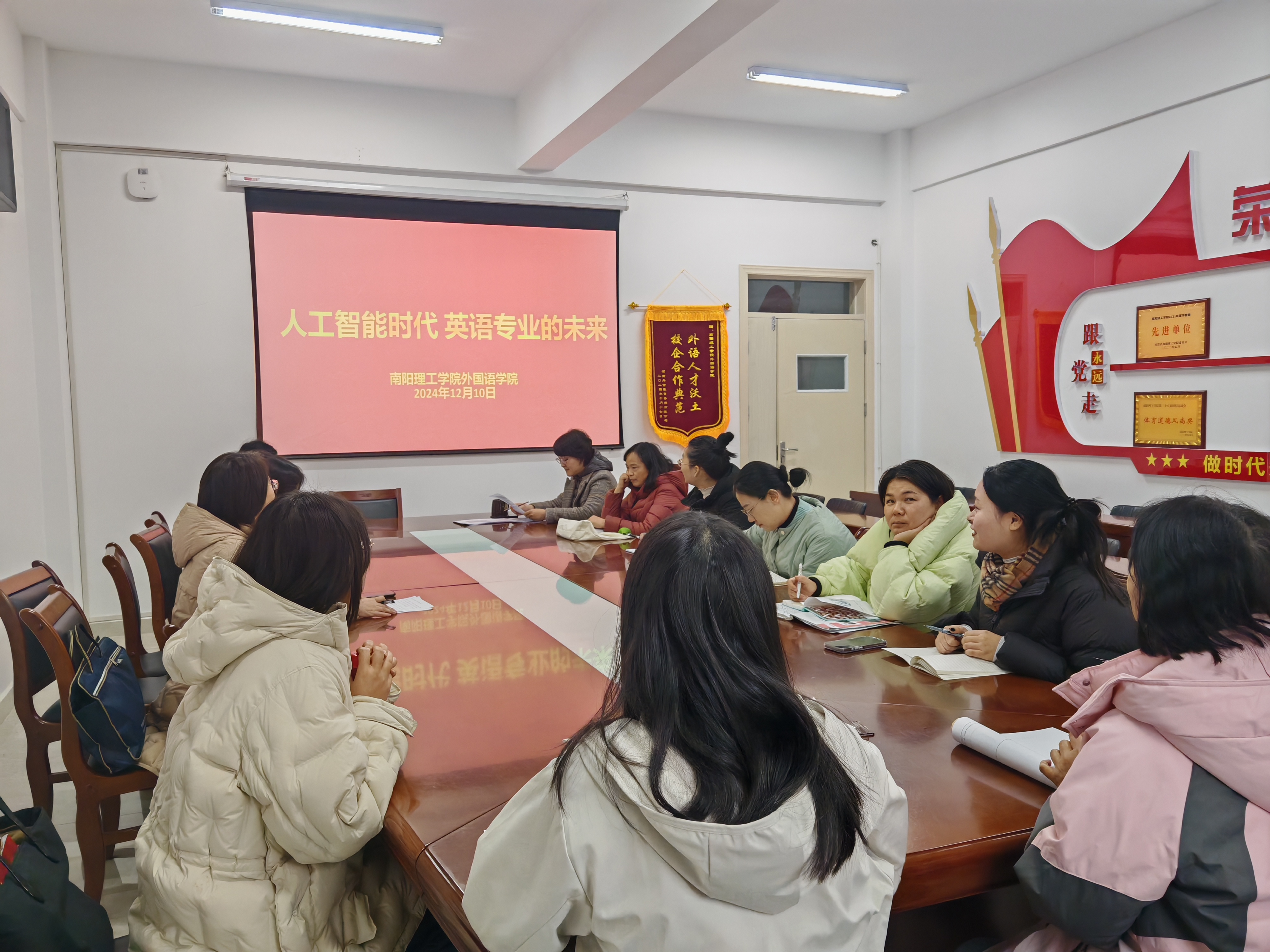 会上,王玥晴首先分析了人工智能时代英语专业所面临的机遇和挑战;强调了在人工智能和数字化技术不断发展的背景下,实现学科间的融合及利用AI等工具提高专业竞争力的重要性;提出了英语教学要加强学生思辨能力和创新意识的培养,让学生真正成为跨文化沟通的桥梁和纽带。最后,与会教师们围绕如何实现学科间的融合展开了热烈讨论,共同为英语专业的未来发展出谋划策。