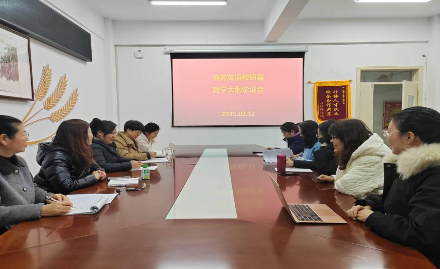 本网讯(通讯员/王子瑞)为有序推进我院本科审核评估工作,2025年2月12日,商务英语专业在19号楼201会议室召开2023版课程大纲修订研讨会。会议由专业负责人王苗主持,教研室全体教师参加。