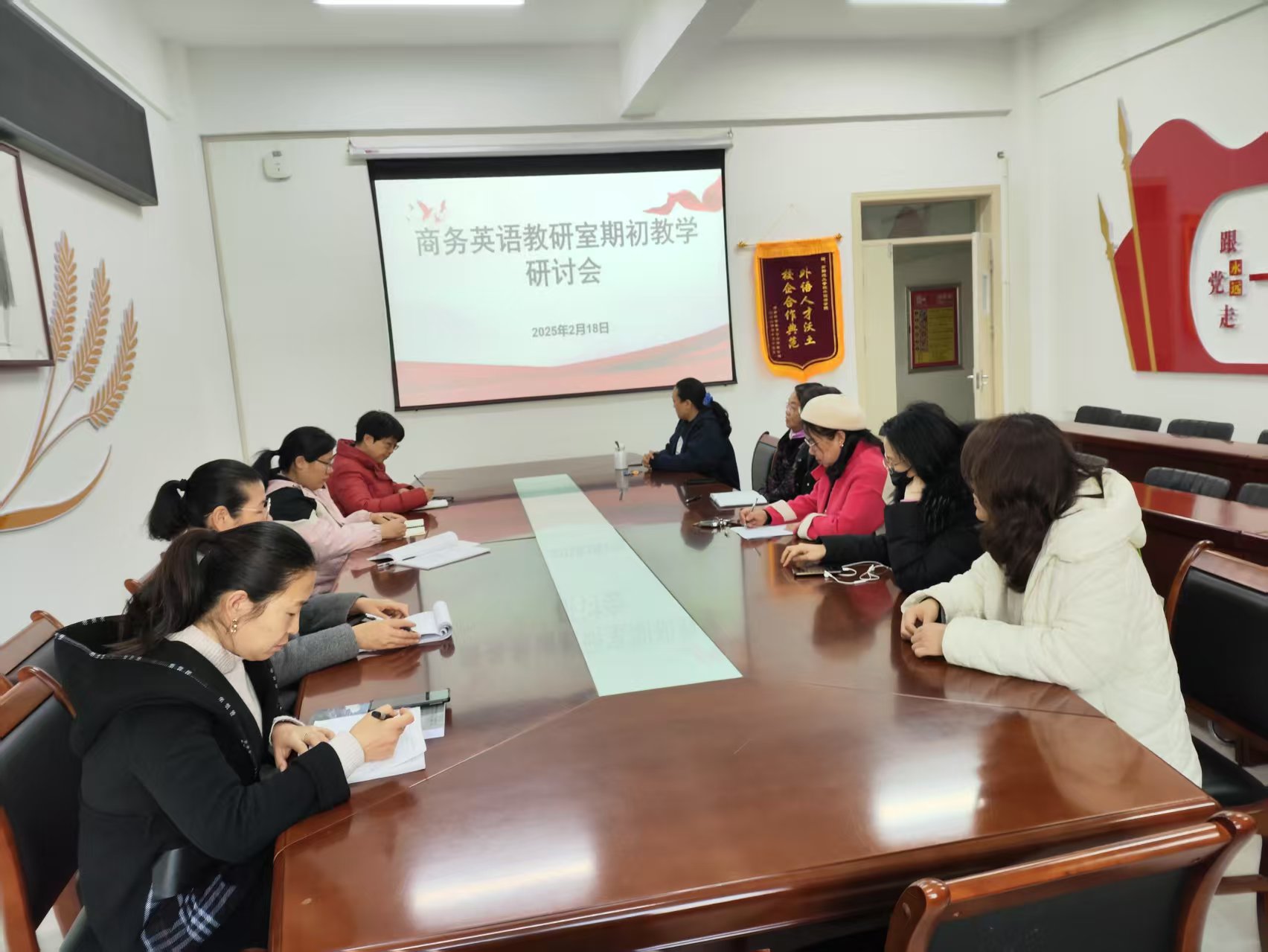 本网讯(通讯员/宋琳璟)为有序推进我院本科审核评估工作,2025年2月18日,商务英语专业在19号楼201会议室召开达成度论证及教代会提案研讨会。会议由专业负责人王苗主持,教研室全体教师参加。