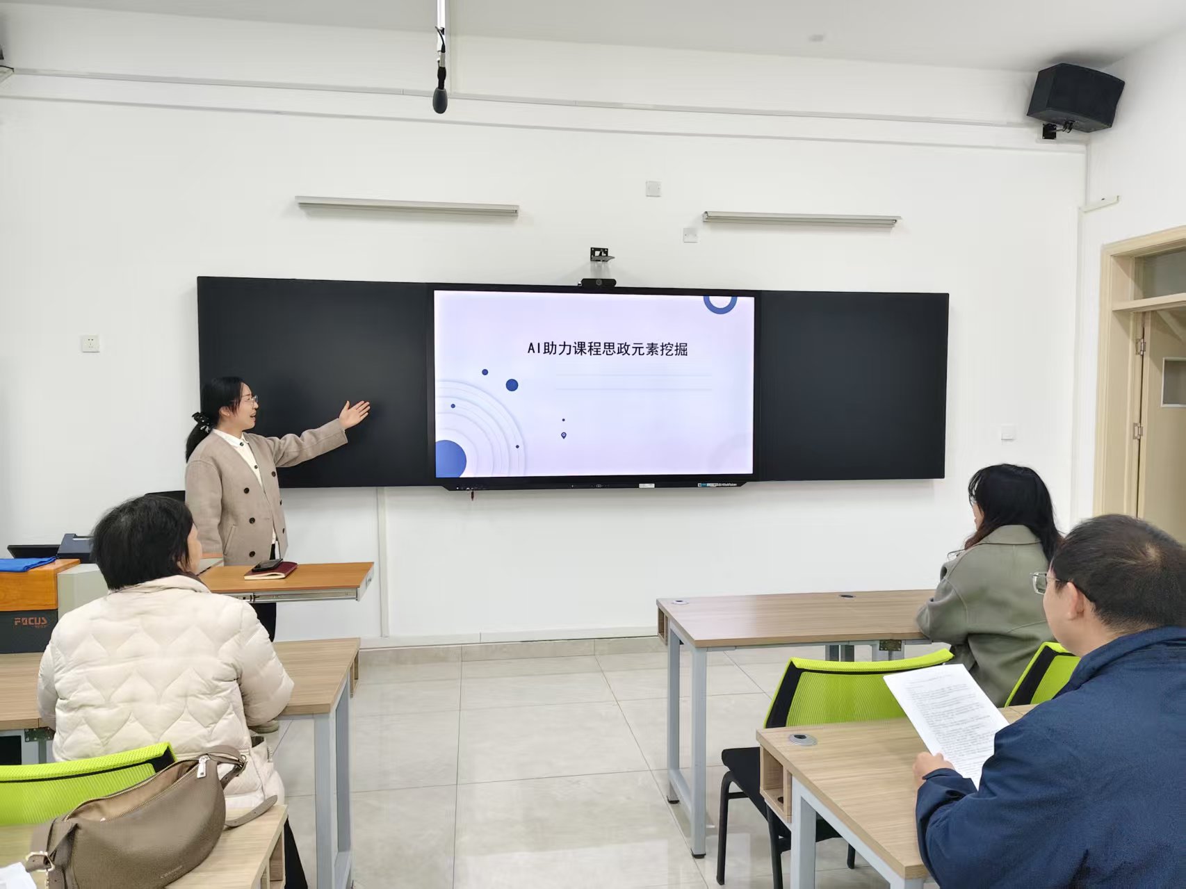 活动中,余小权老师分享了如何利用AI让高年级课程中的抽象思政内容变得生动具体;郭瑜老师探讨了运用AI深度挖掘思政元素的方法;贾琦老师则聚焦AI在在线教学平台中融入思政内容的实践。李银老师基于对我校日语学习者数字素养的调查结果,为AI赋能课程思政教学提供了实证参考。在随后的研讨中,与会教师围绕如何有效利用AI提升课程思政教学效果、提高立德树人质量展开了热烈讨论。